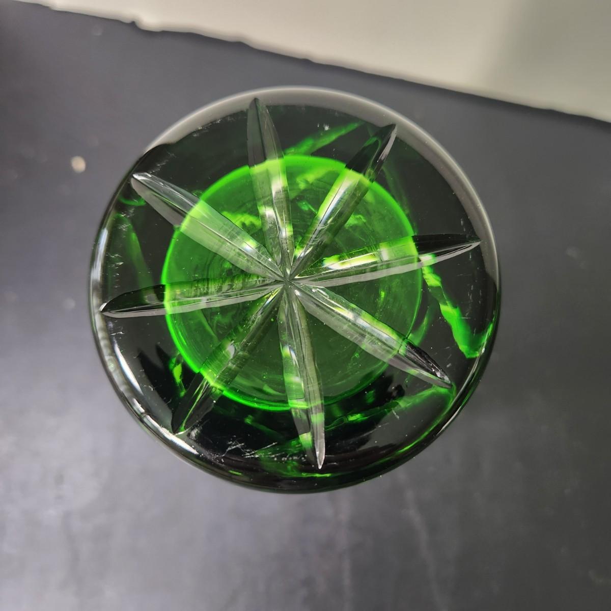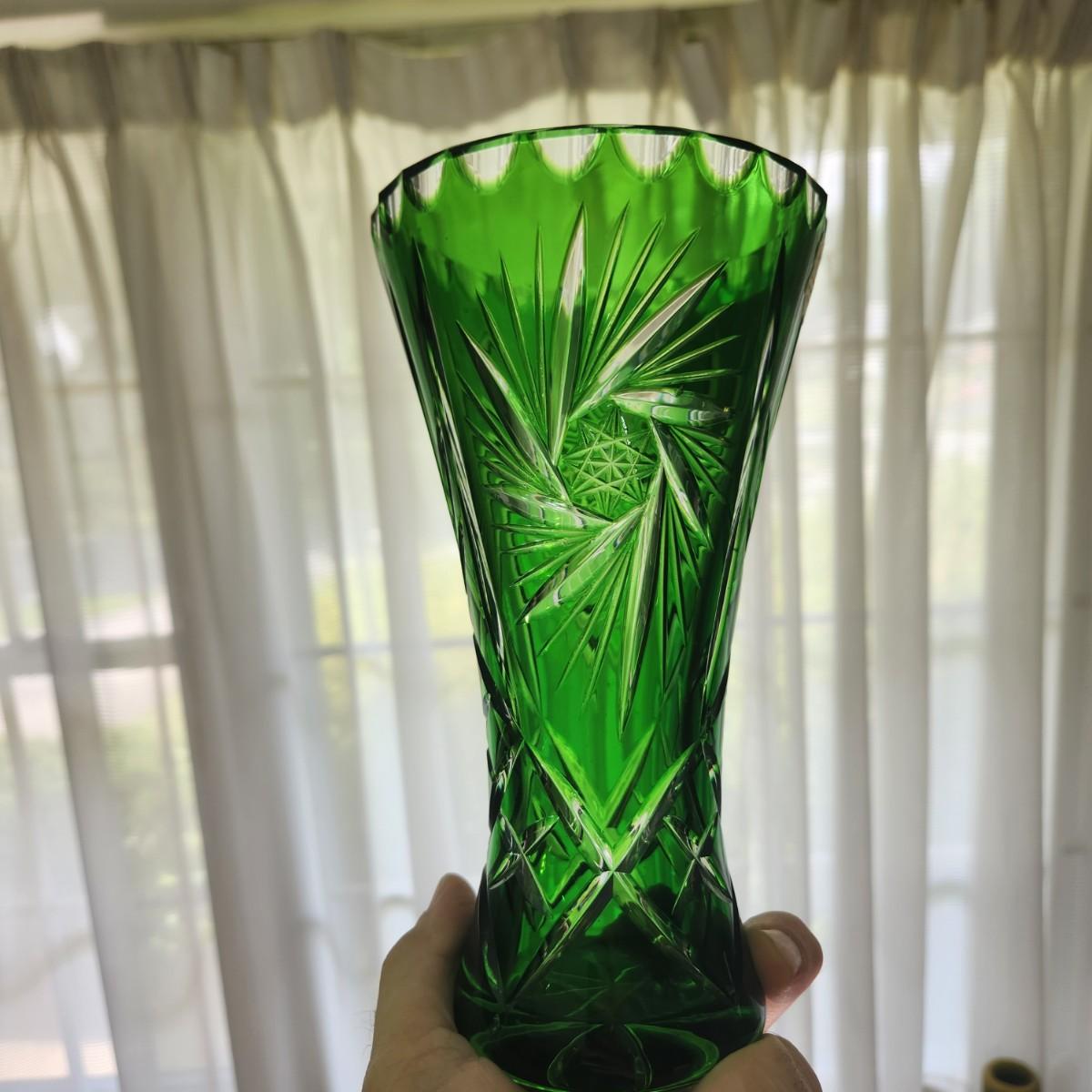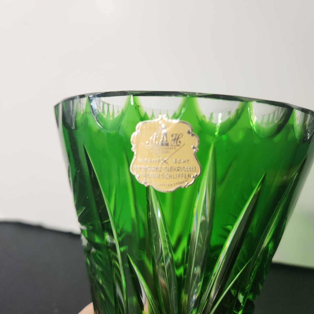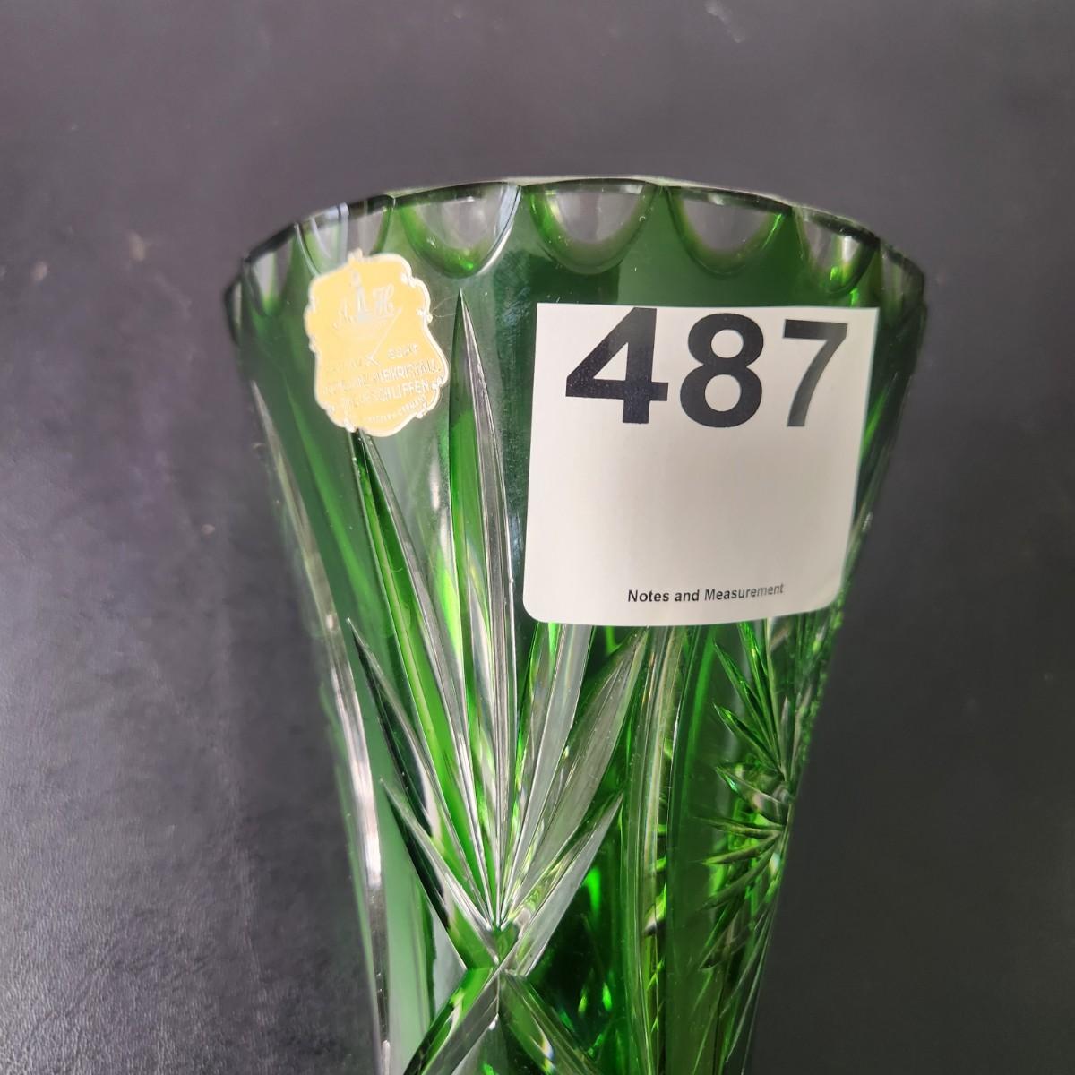 Vintage Emerald Green Vase Cut to Clear  Glass Hochglanz Bleikristall 8.25"