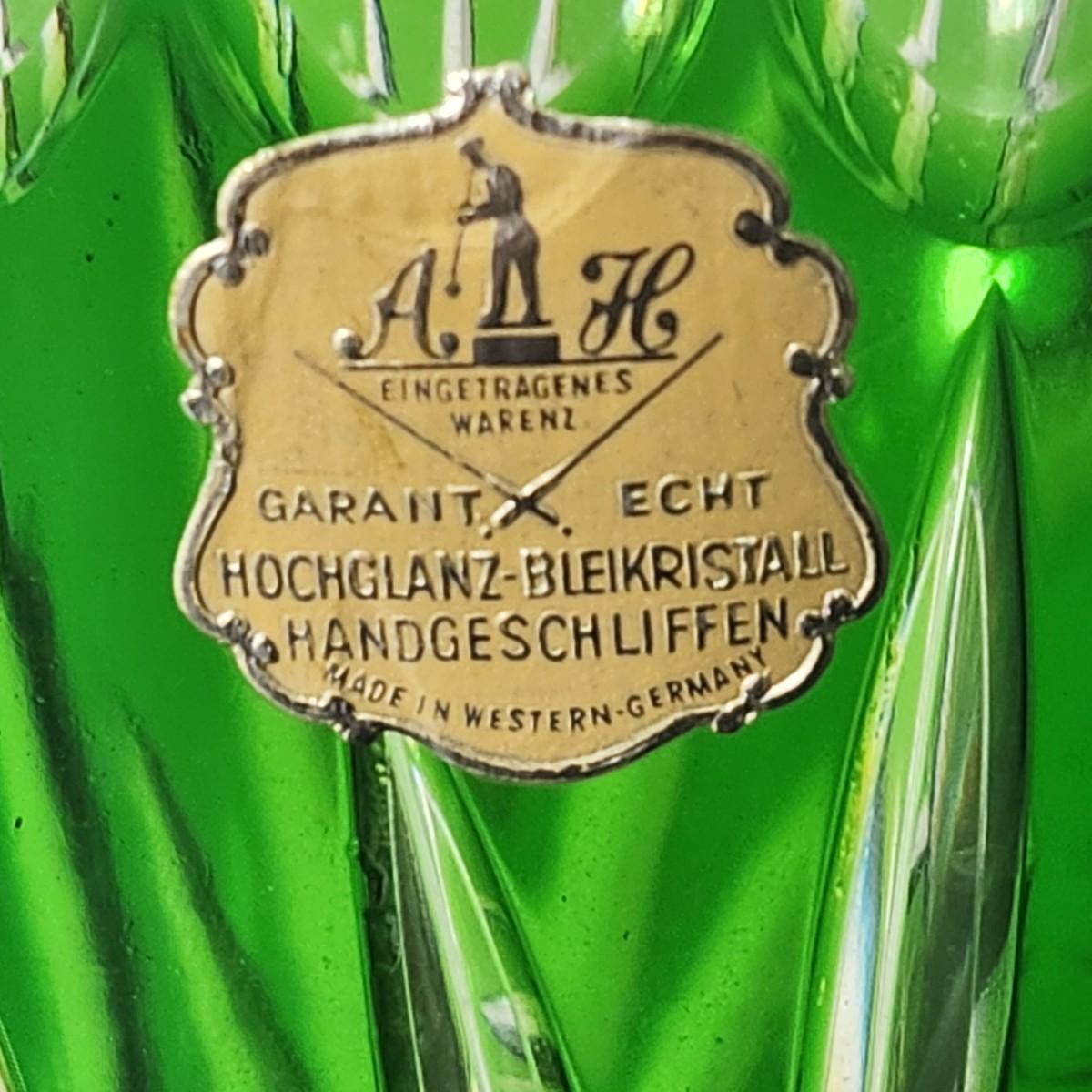 Vintage Emerald Green Vase Cut to Clear Glass Hochglanz Bleikristall 8.25"