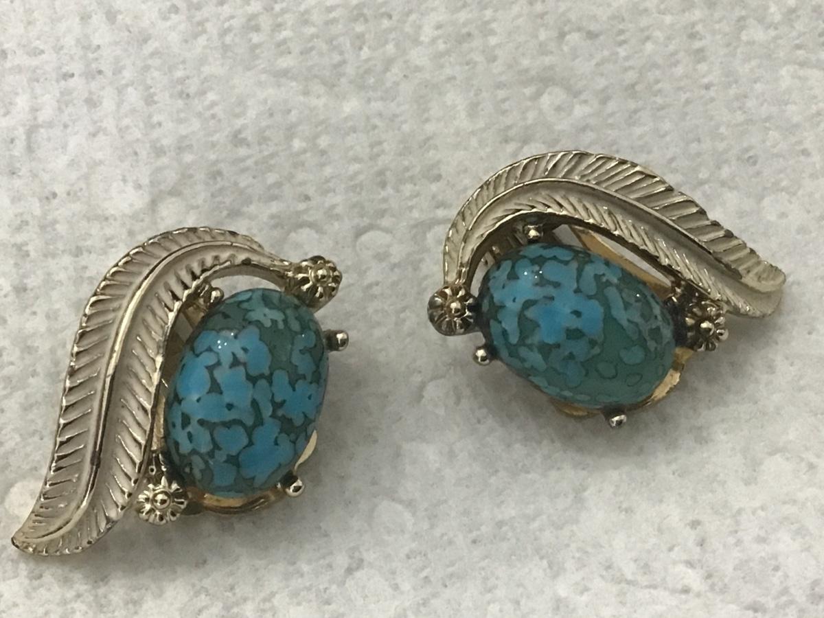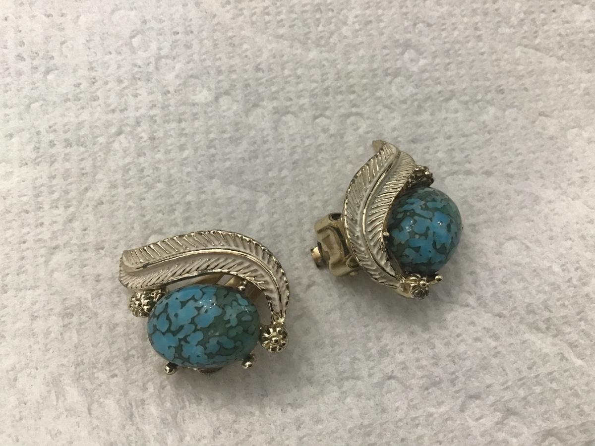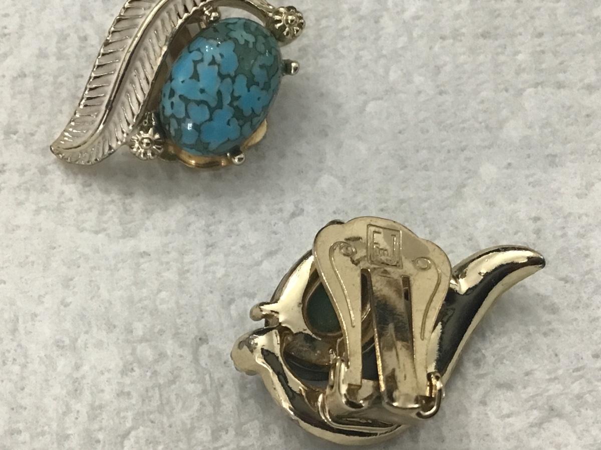 Vintage EMJ Emmons Blue and Enamel Clip On Earrings