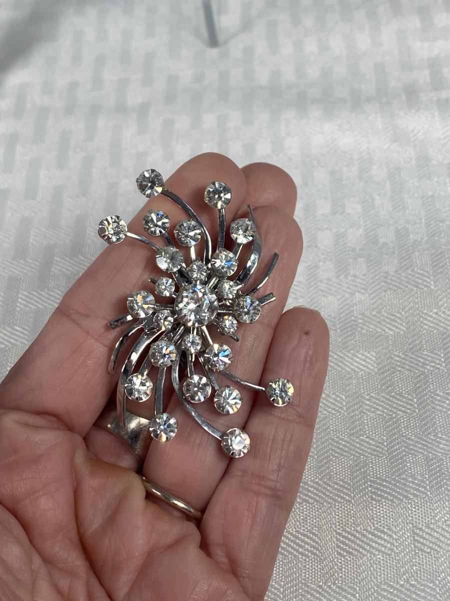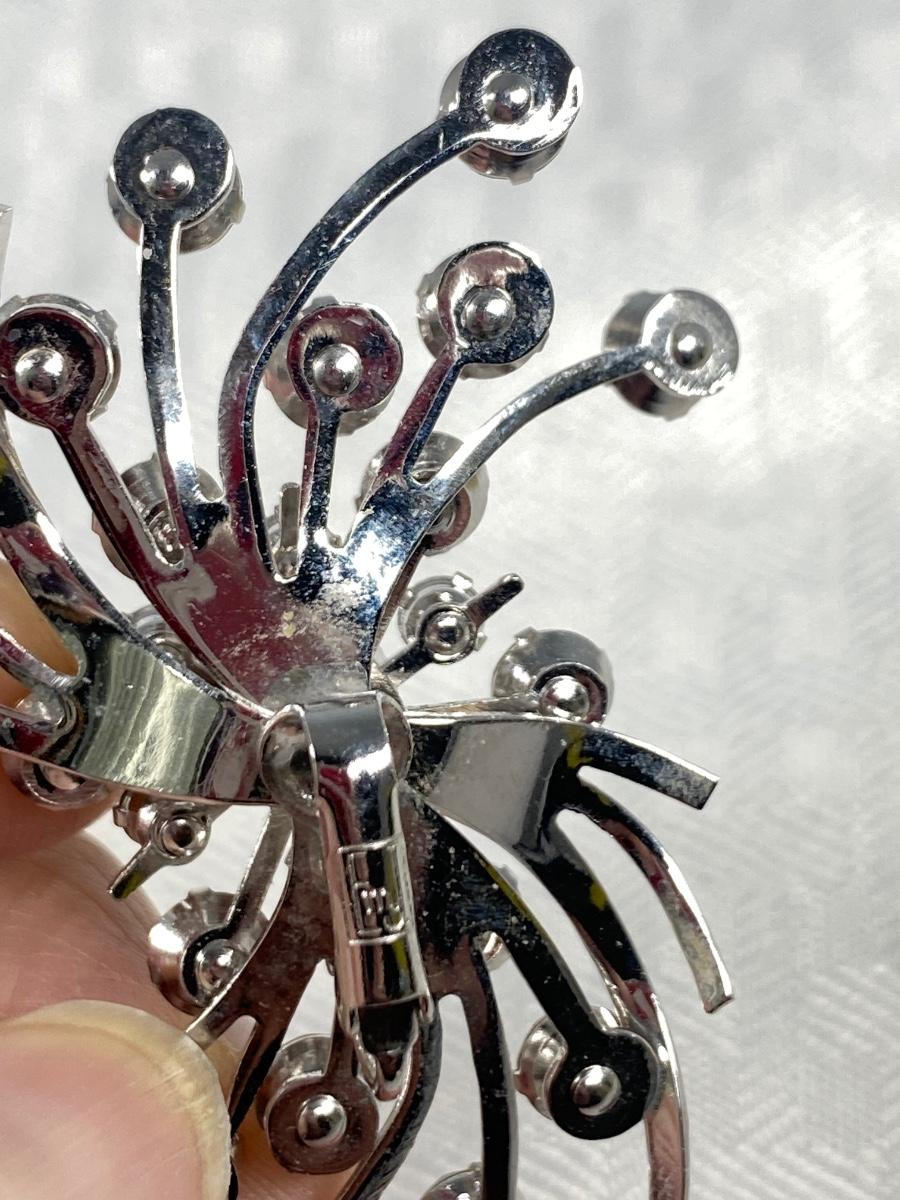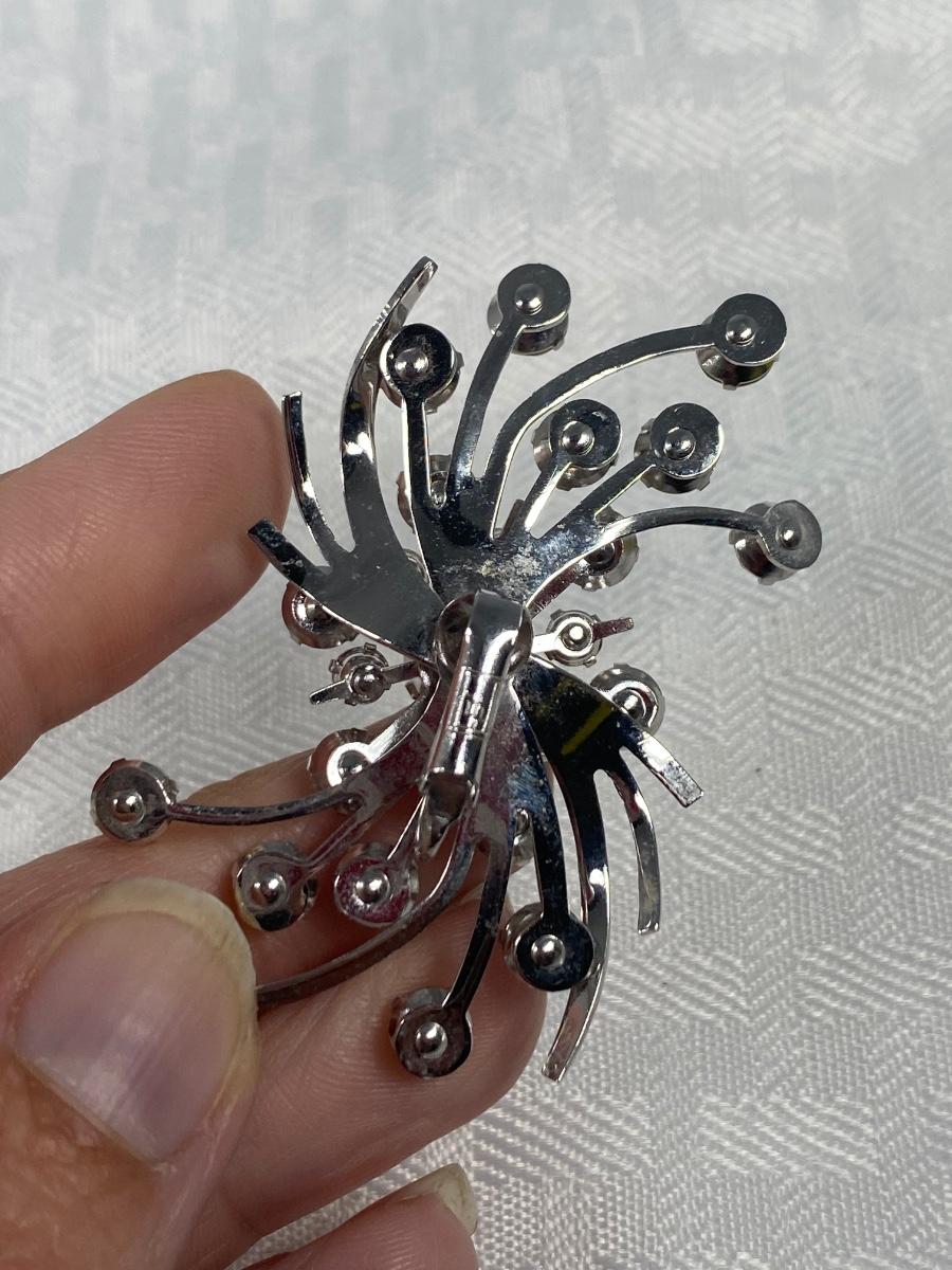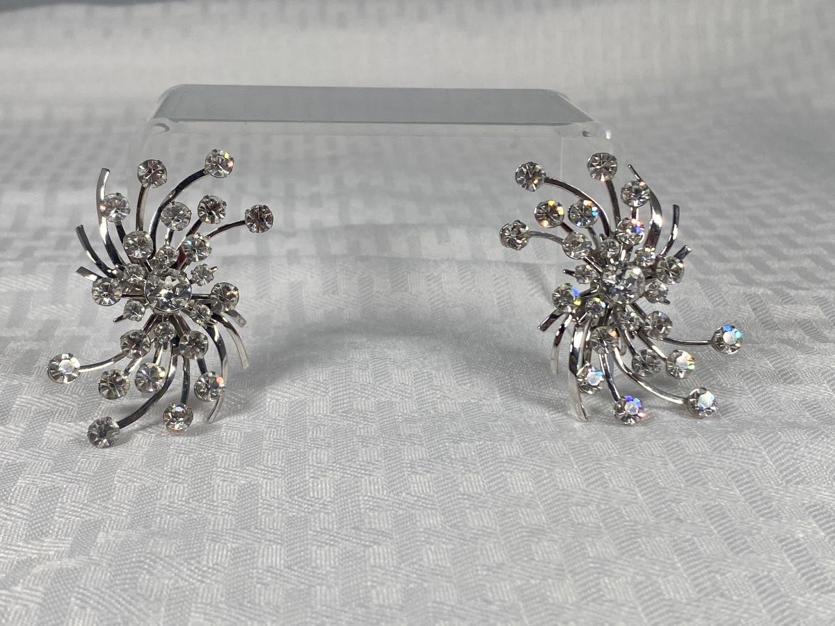 Vintage EMJ Emmons Silver Tone Swirl AB Rhinestone Clip Style Earrings