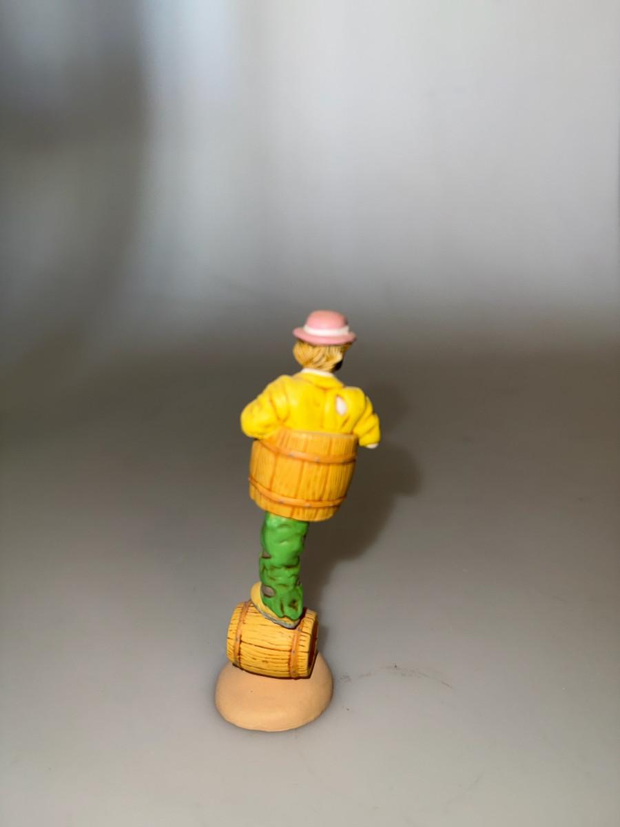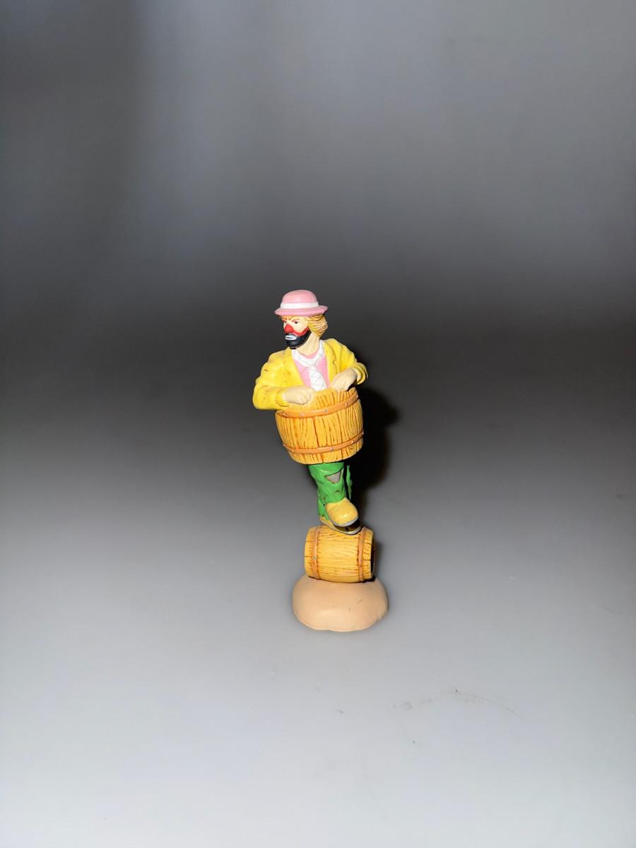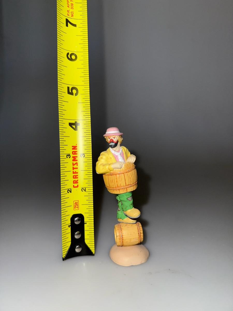 Introducing the Vintage Emmett Kelly Jr. clown figurine in a barrel, a delightful piece that captures the playful spirit of the iconic hobo clown. This charming figurine features Emmett peeking out from a barrel, showcasing his classic attire and whimsical expression. The intricate details and vibrant colors bring this scene to life, making it a wonderful addition to any collector's display or a unique decorative accent for your home. Don’t miss the chance to own this nostalgic vintage treasure that celebrates the joy and humor of the circus!