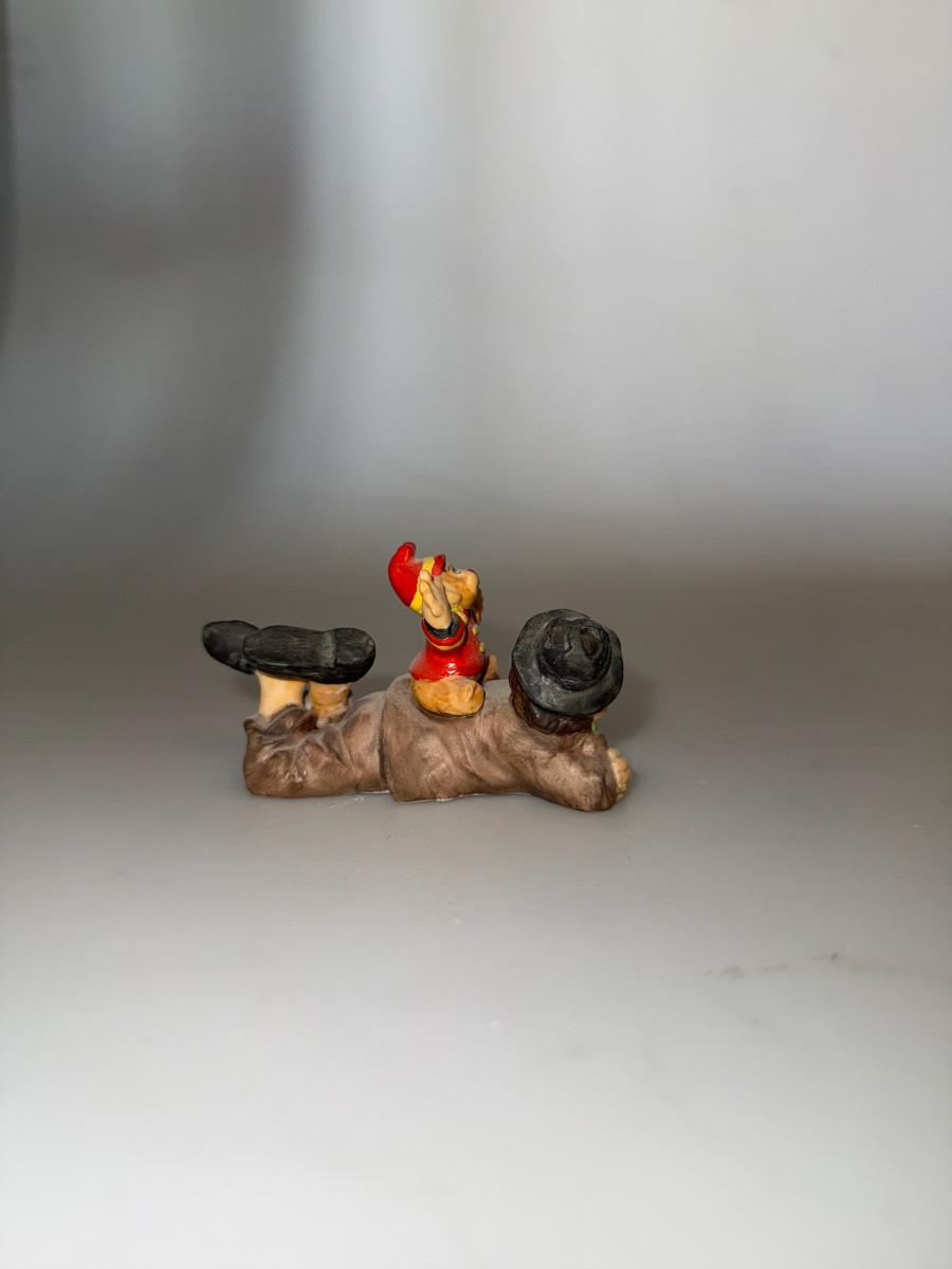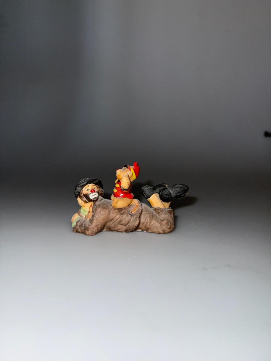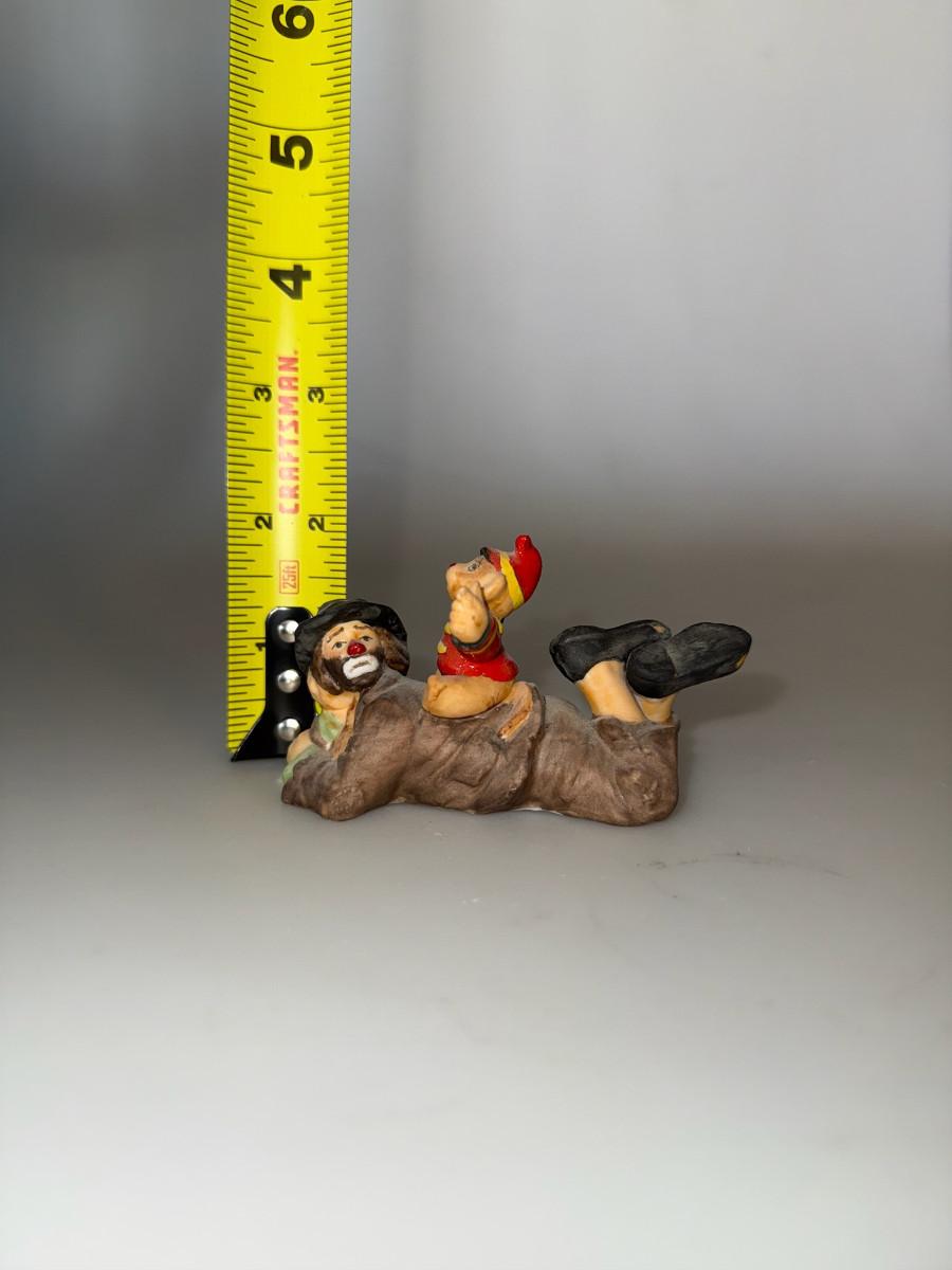 Introducing a vintage Emmett Kelly Jr. small clown hobo figurine featuring a playful circus monkey by Flambro. This delightful piece showcases the whimsical charm of the iconic clown, complete with intricate details and vibrant colors. Perfect for collectors or as a unique decorative accent, this figurine adds a touch of nostalgia and joy to any space. Don’t miss the opportunity to add this charming piece to your collection!