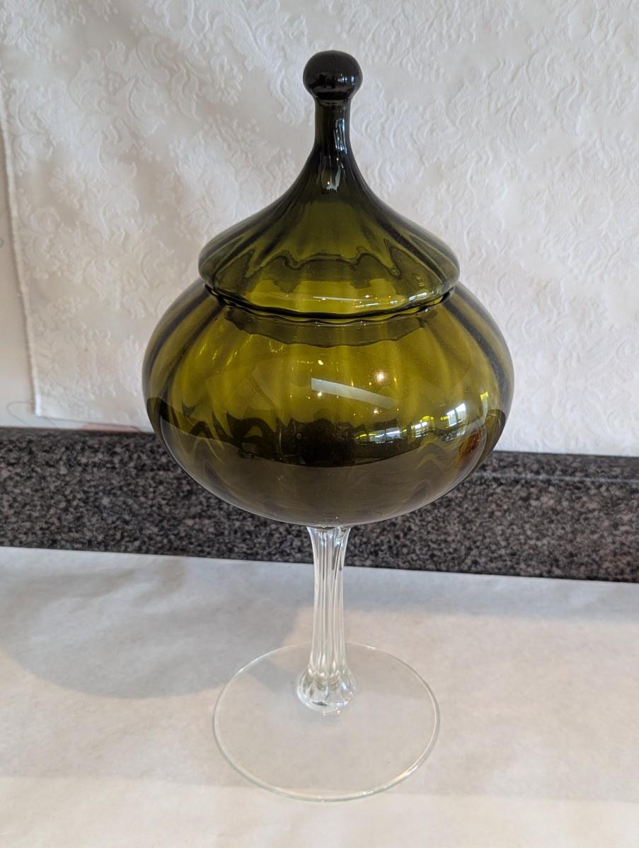Vintage Empoli Style Art Glass Pedestal Covered Dish