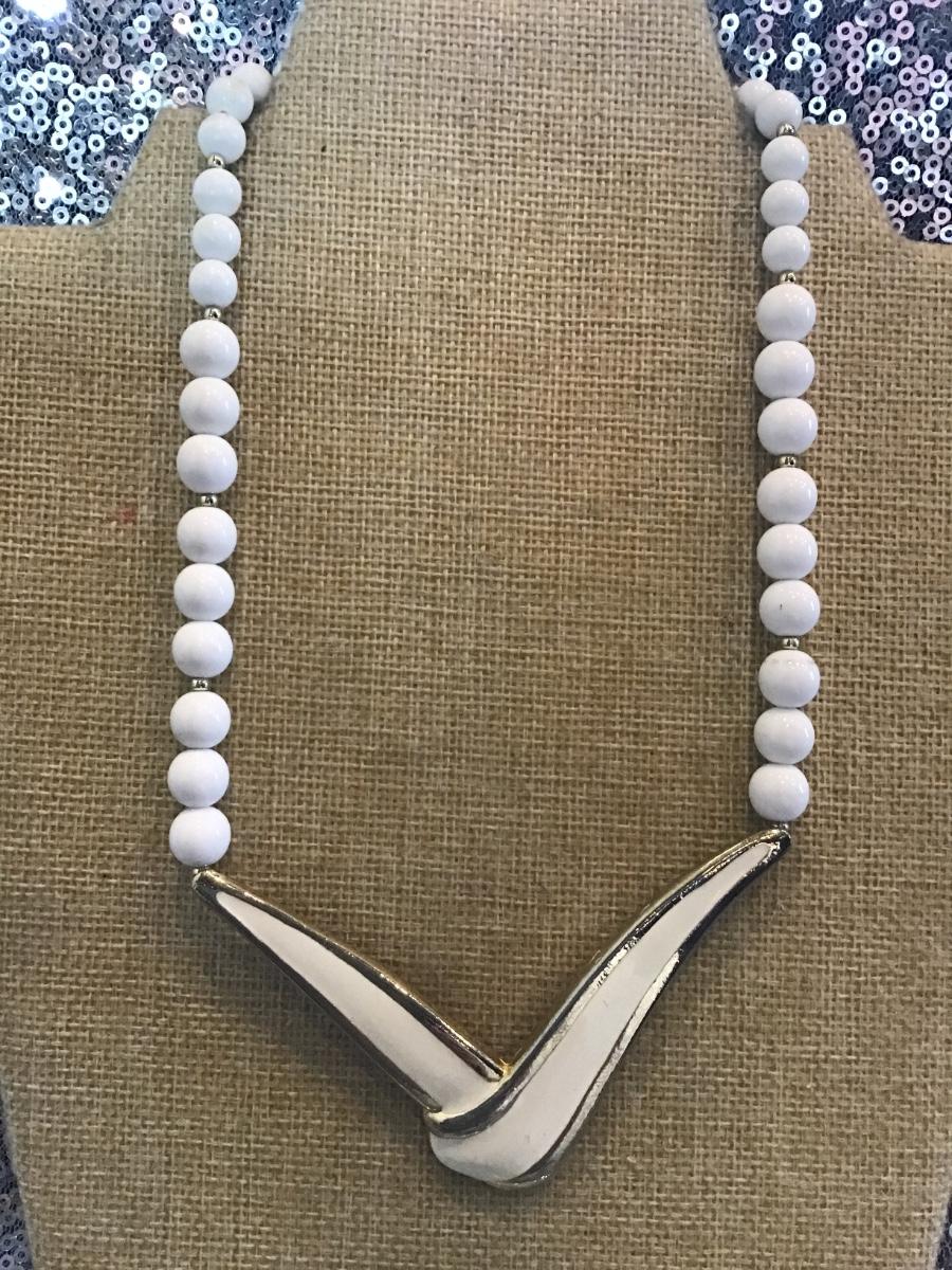 Vintage Enamel Beaded V Necklace