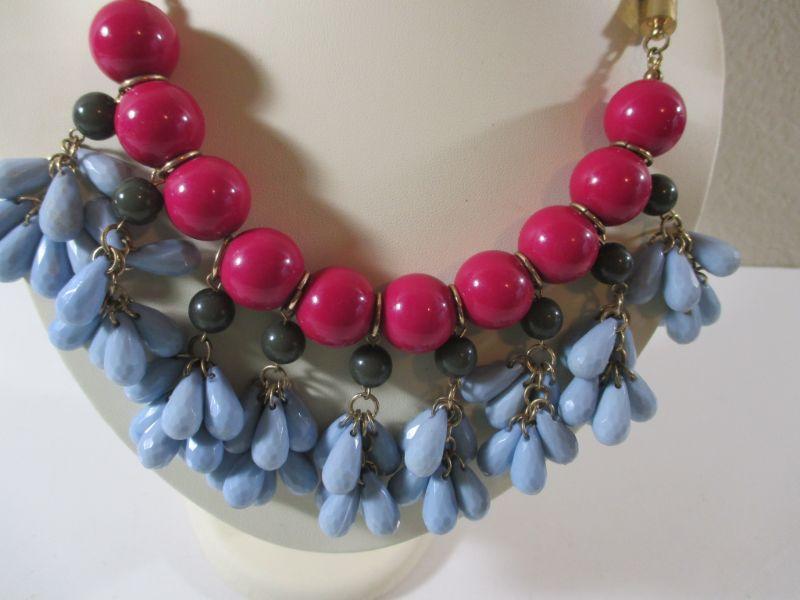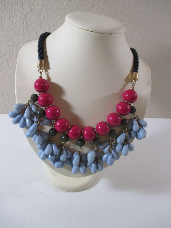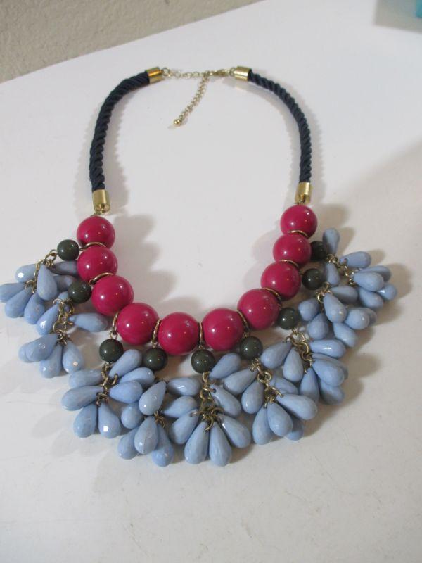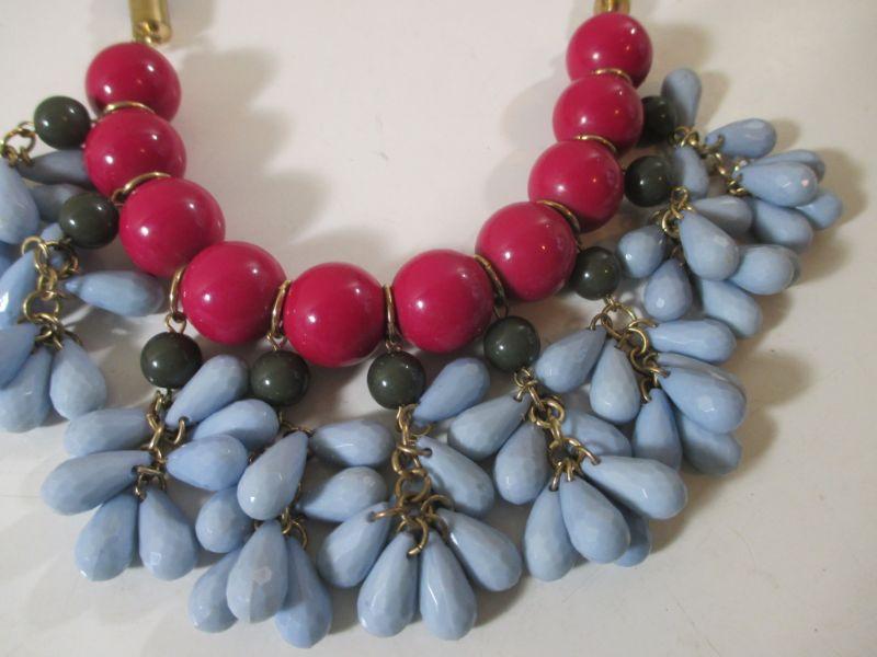 Vintage Enamel Bib Choker necklace Teardrop Dangles Blue and Red 9.50 adjustable clasp rope chain