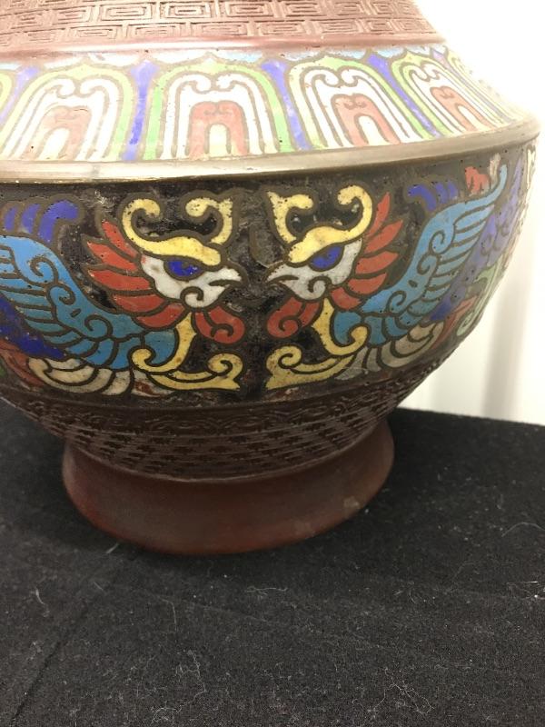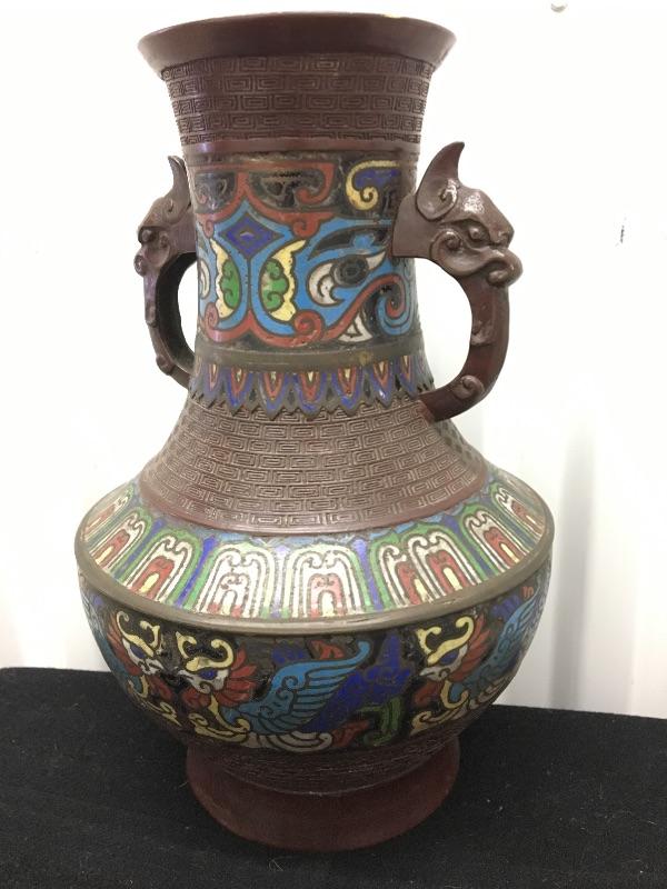 This is a rare bronze vase made in Japan in the early 1900s. Condition is as shown. Heavy piece measures 12” high. Delivery and shipping services available. Please contact us to request a quote.