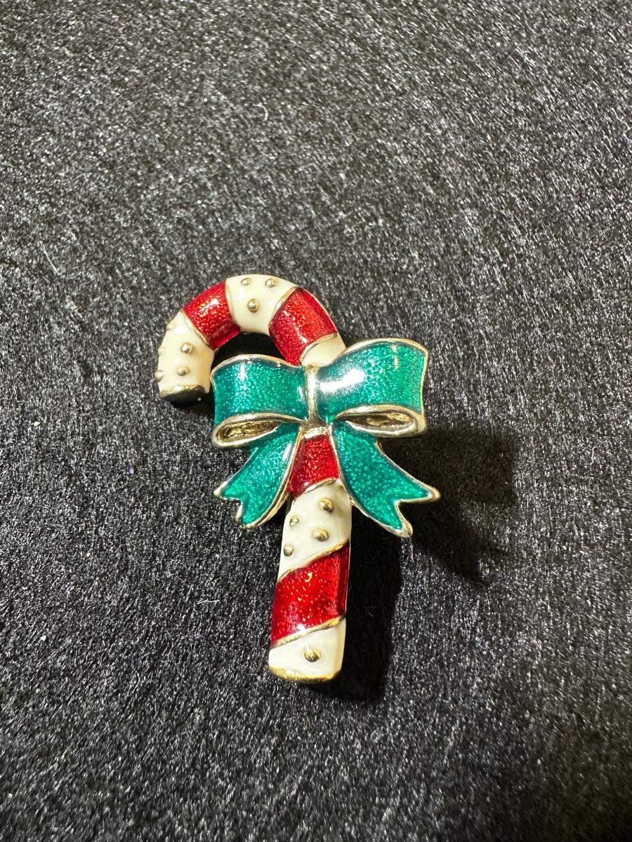 Vintage enamel Christmas candy cane pin