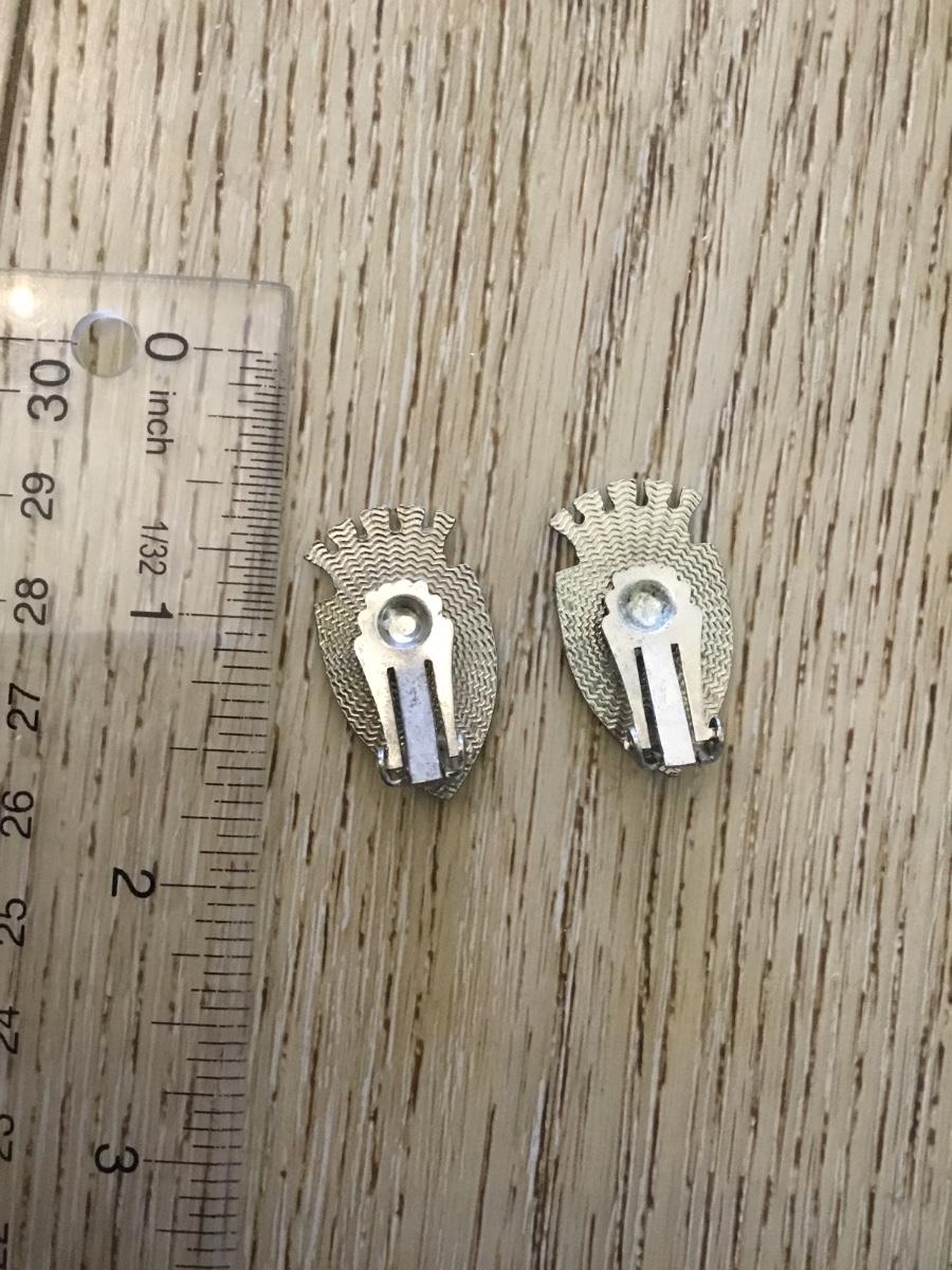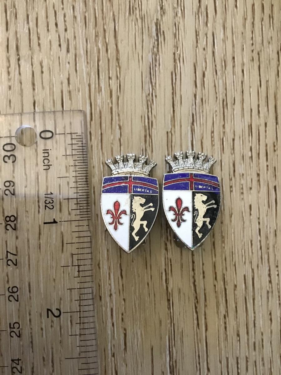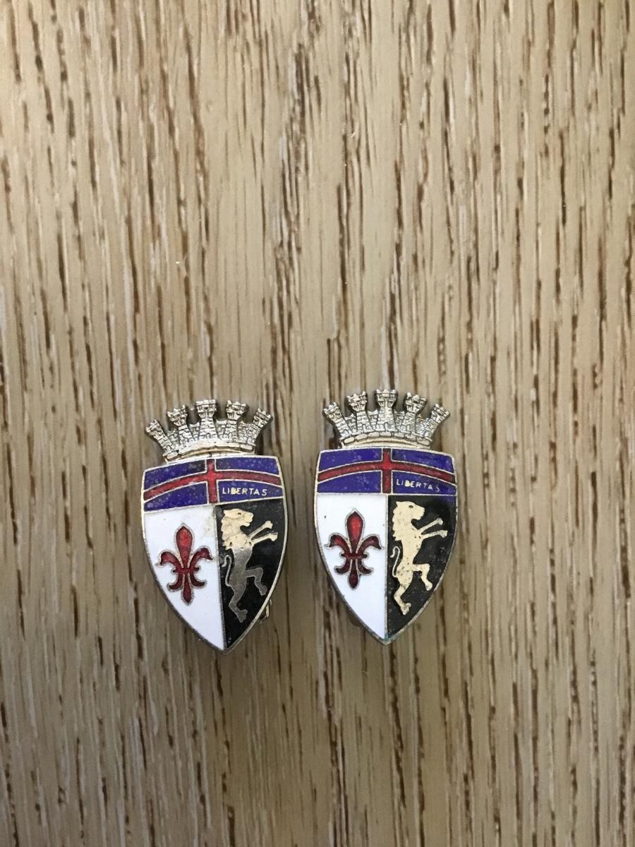 Vintage enamel coat of arms, libertas shield clip on earrings, crown lion blue red