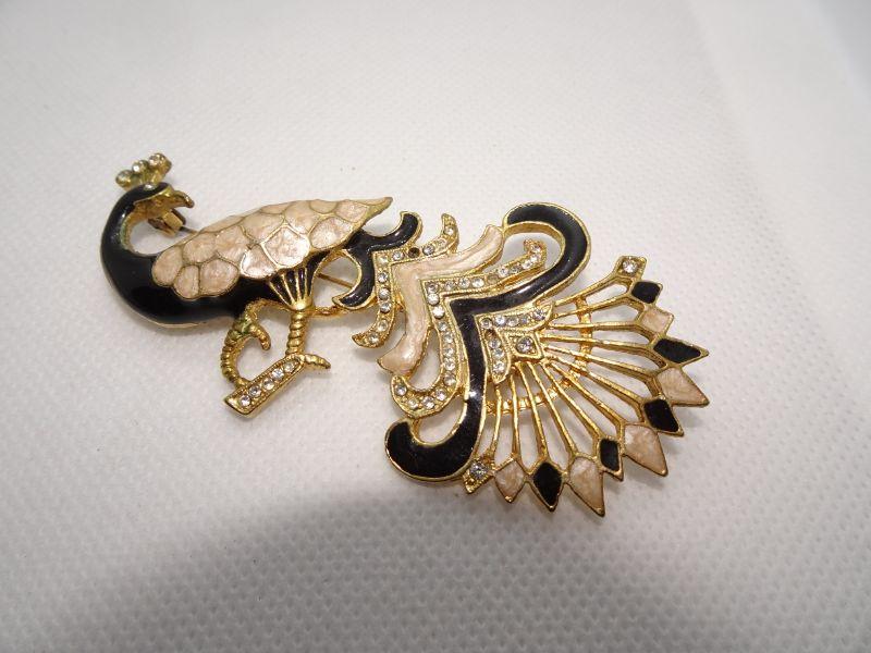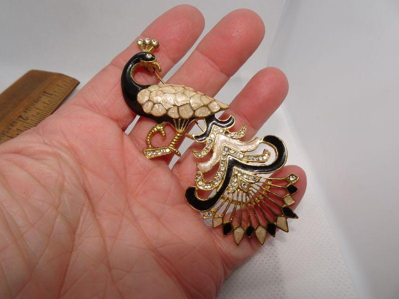 Vintage Enamel Peacock Pendant Brooch, Insect Jewelry