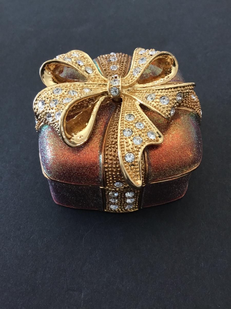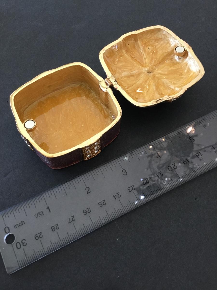 Vintage enamel, metal harvest, sun, glitter, sparkly rhinestone, trinket box