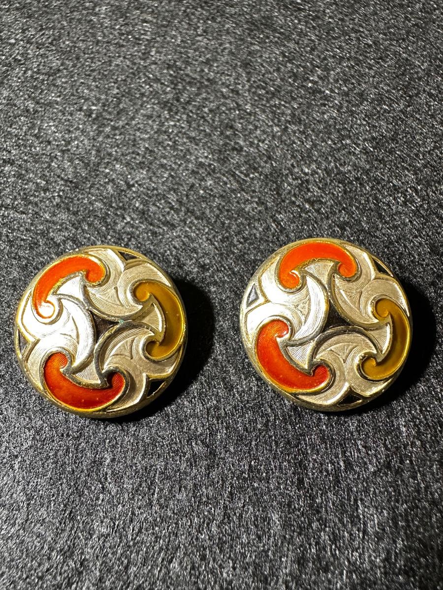 Vintage enamel paint swirl clip on earrings