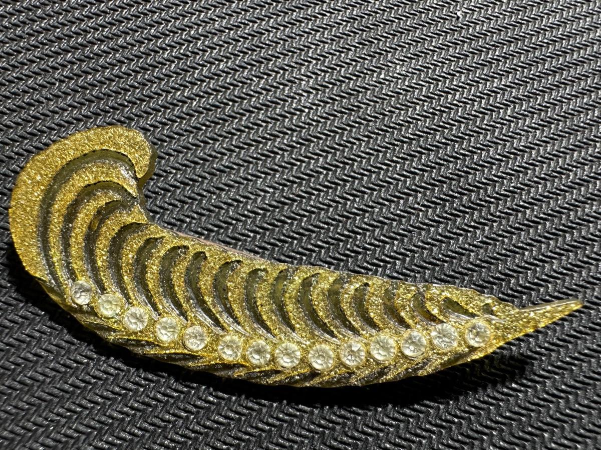 Vintage enamel rhinestone leaf brooch