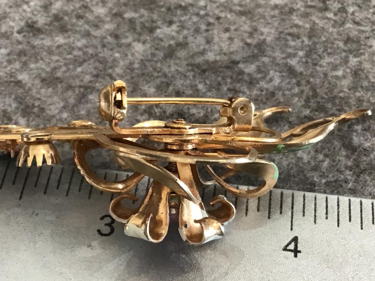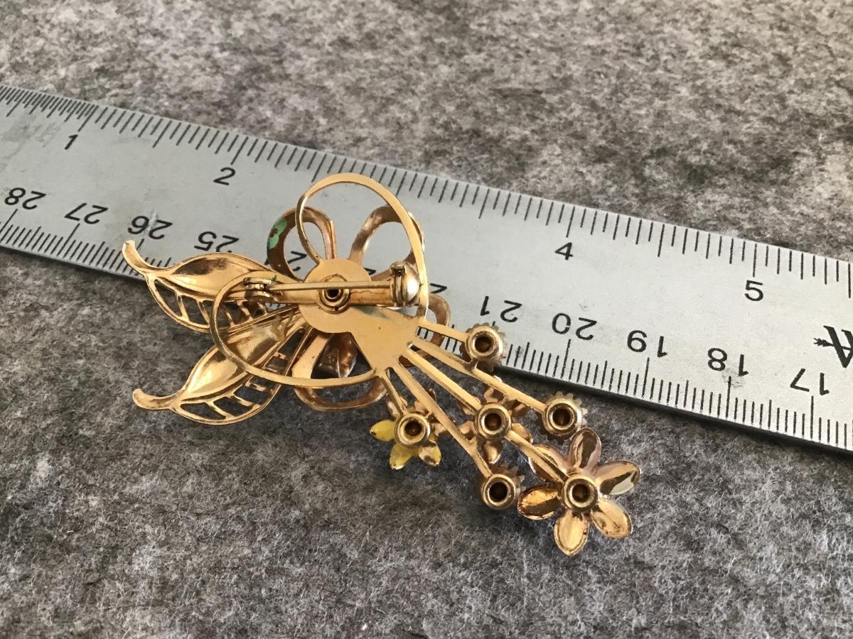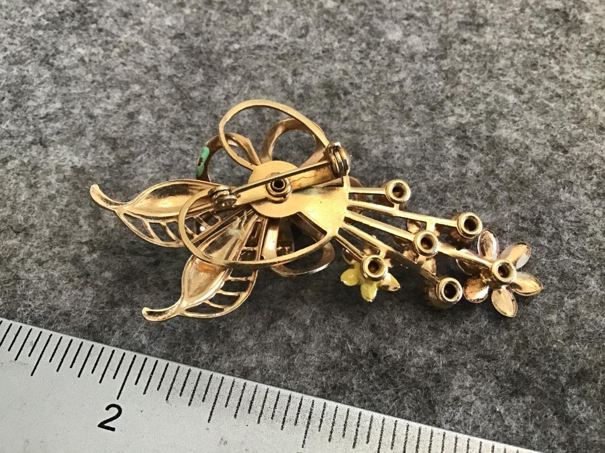 Vintage Enamel Rhinestone Spring Brooch