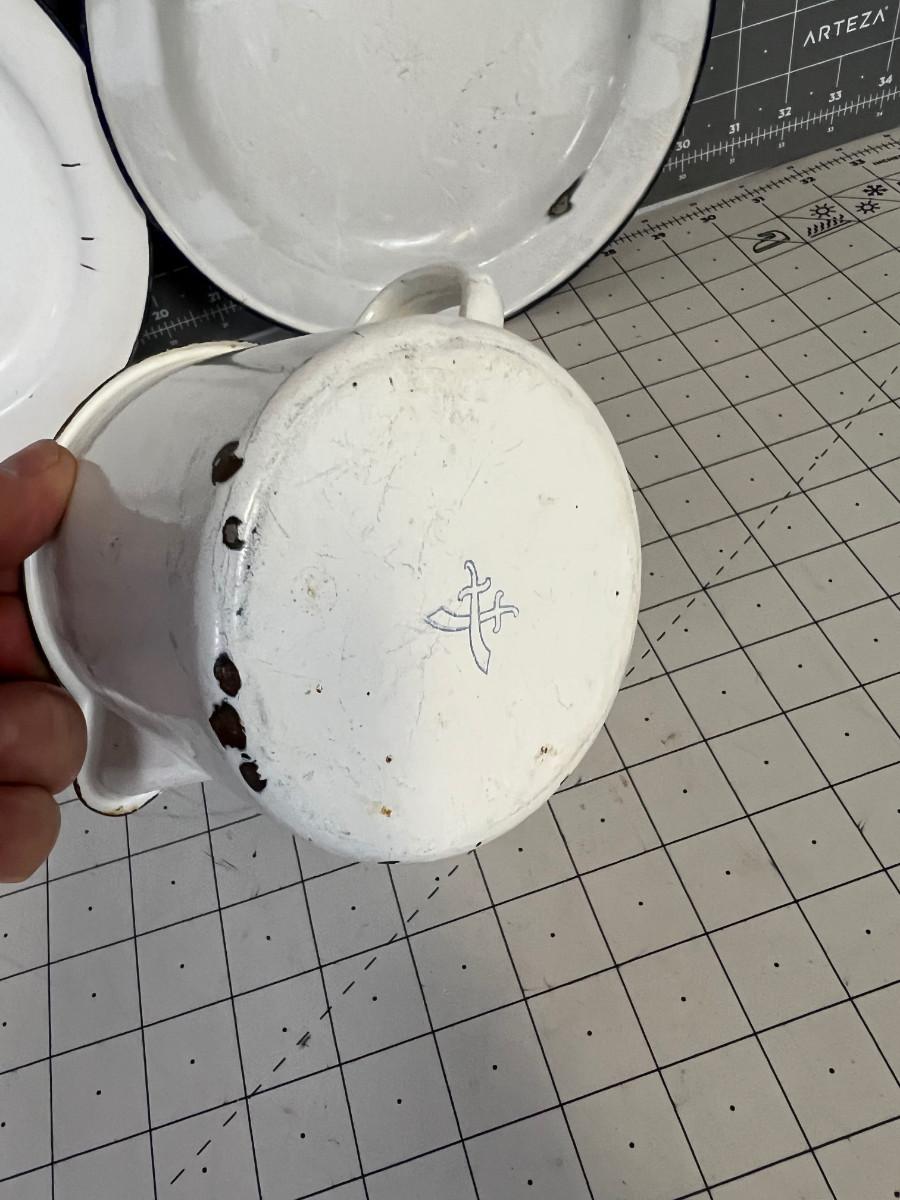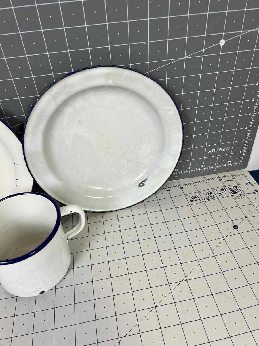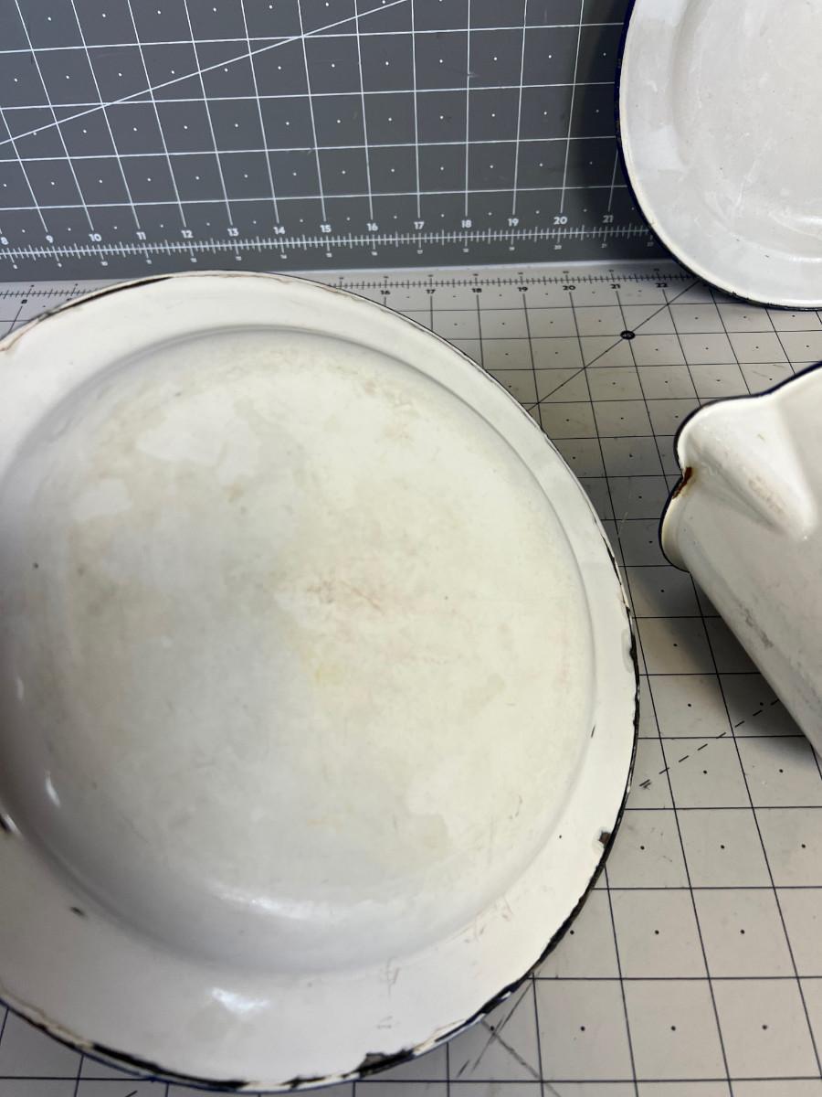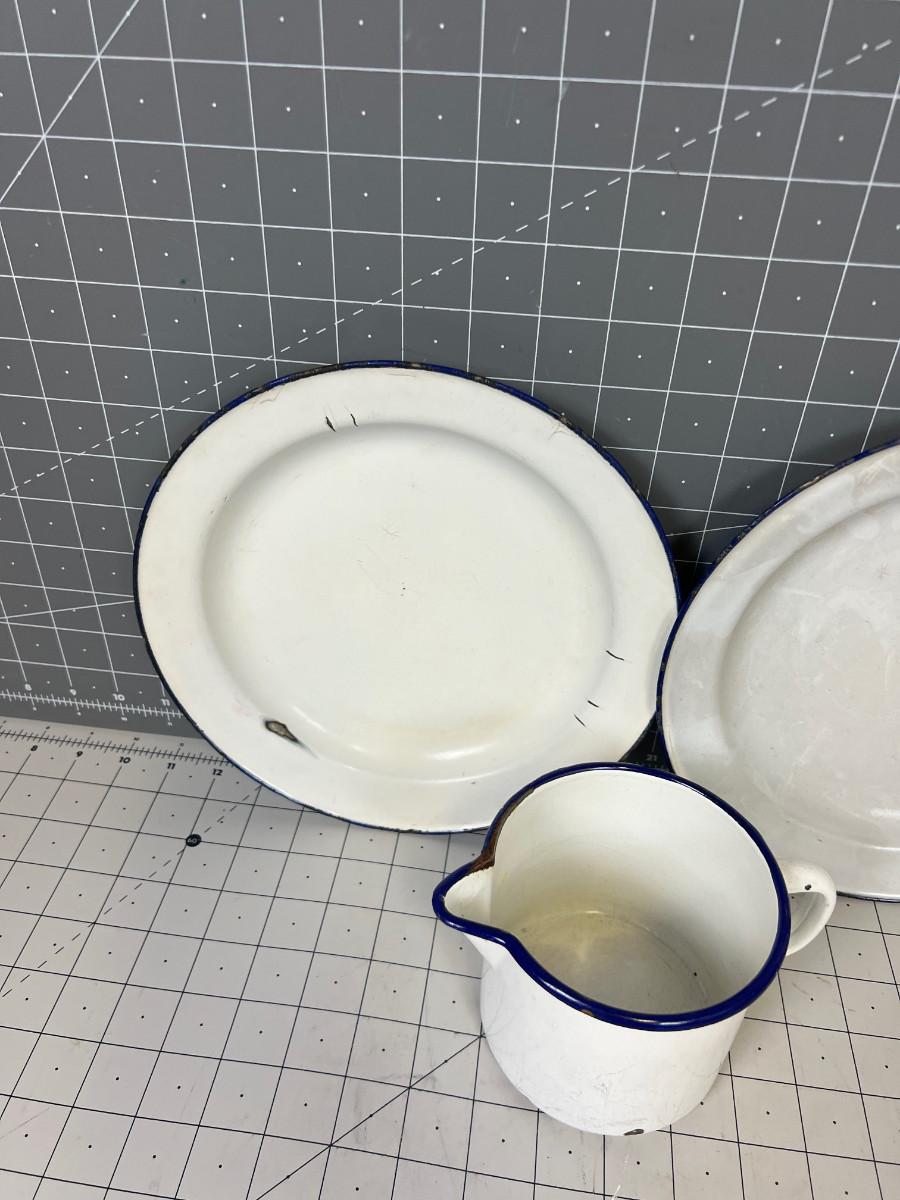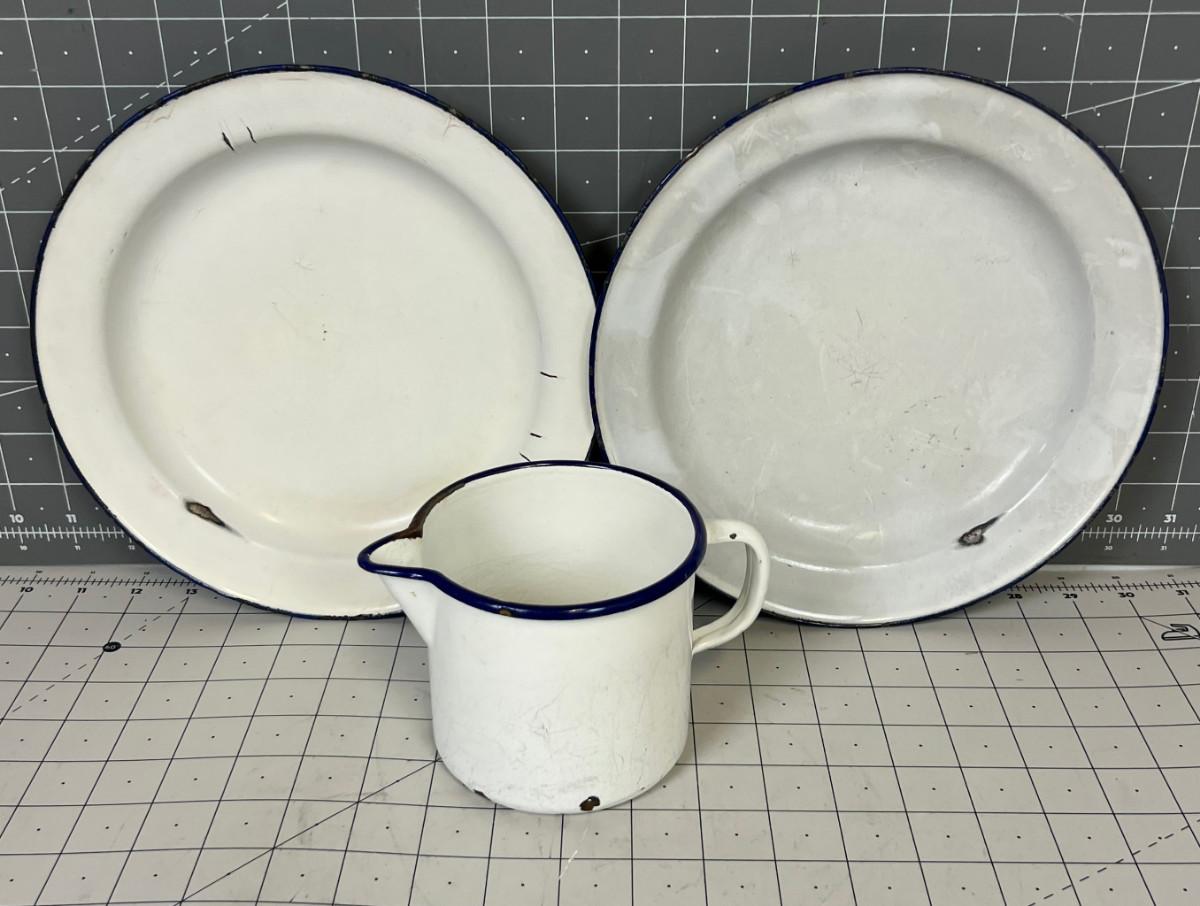 Vintage Enamel Ware (3), 2- plates and a Pitcher