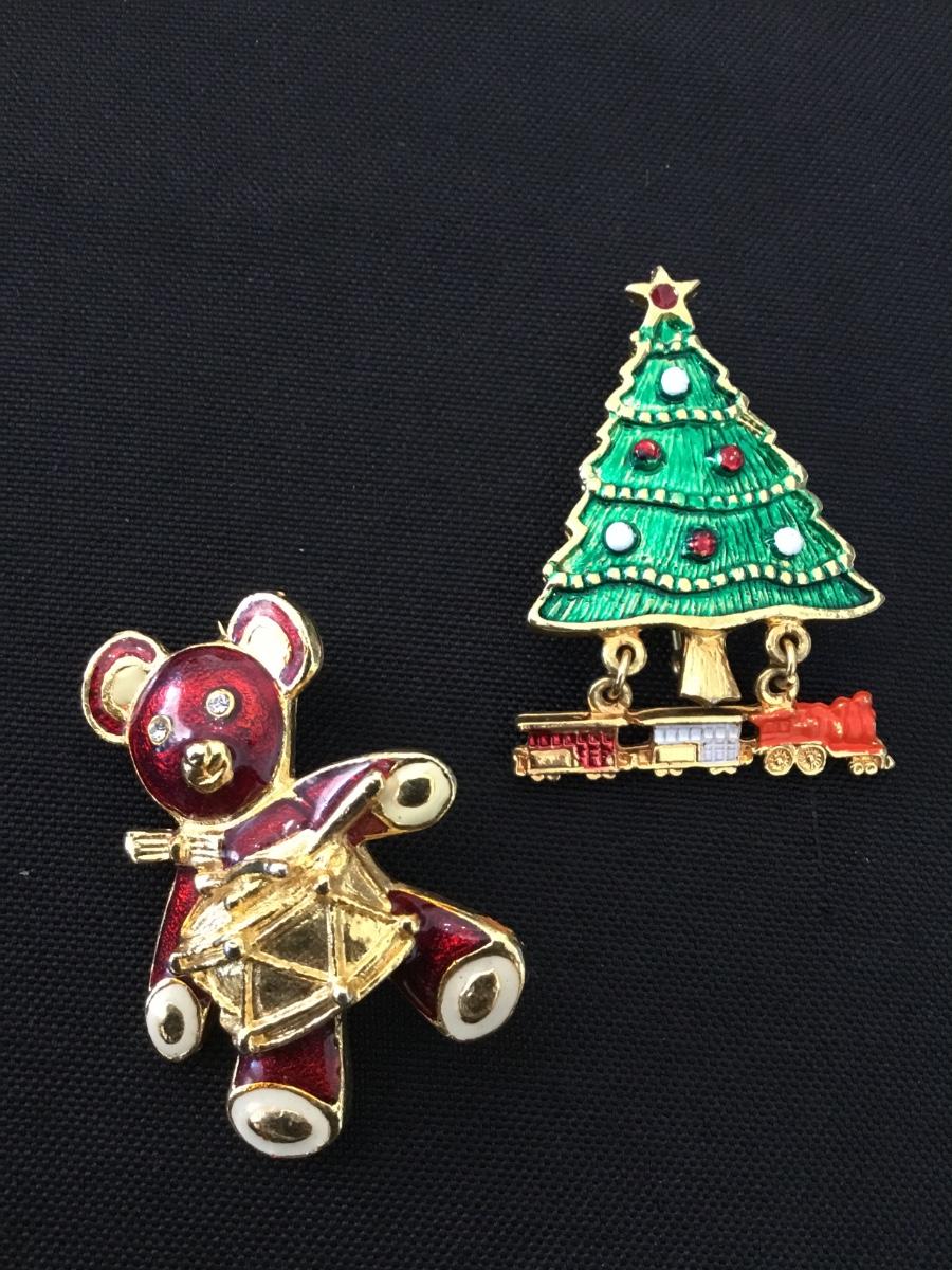 Vintage enameled Christmas brooches