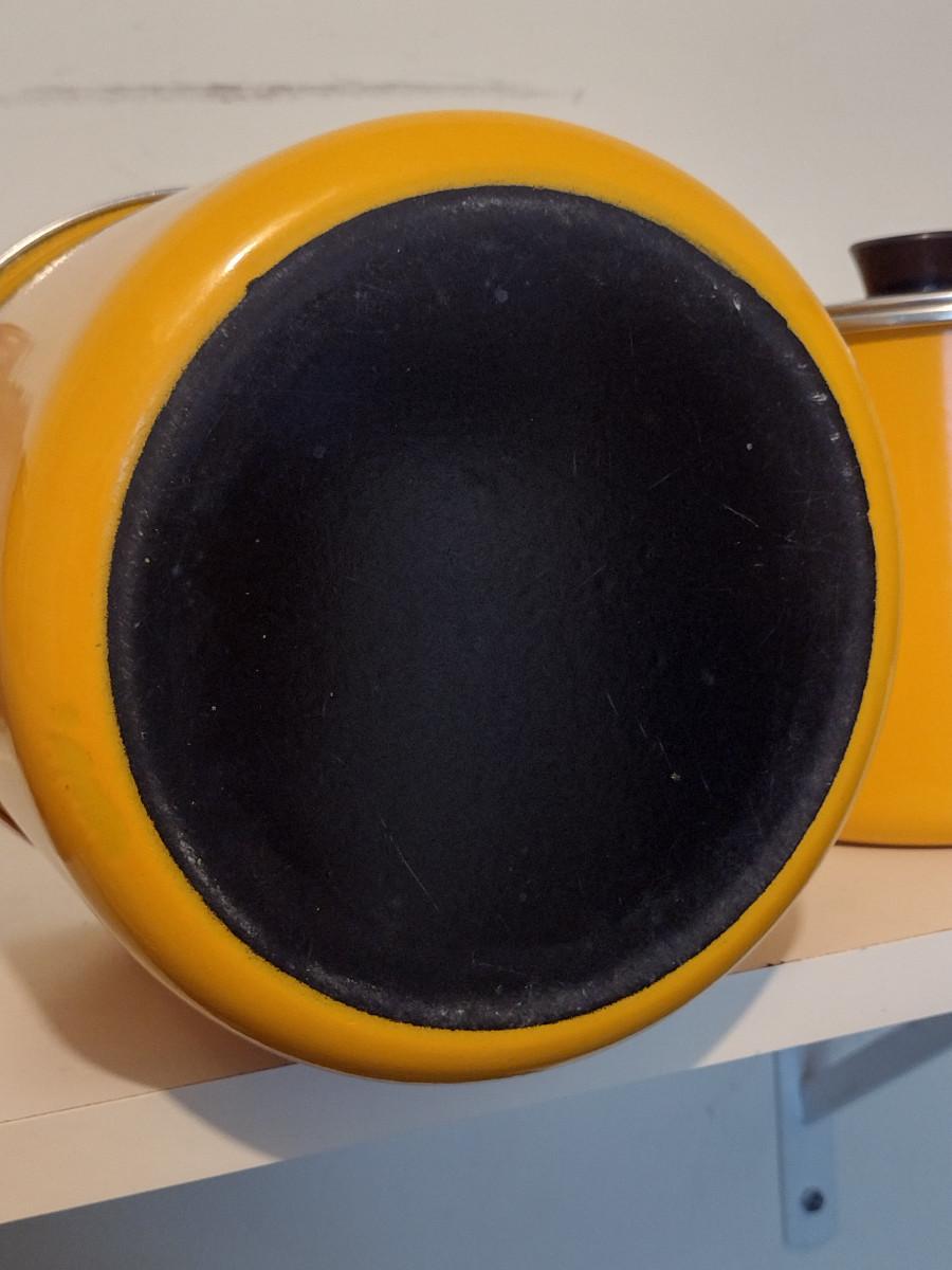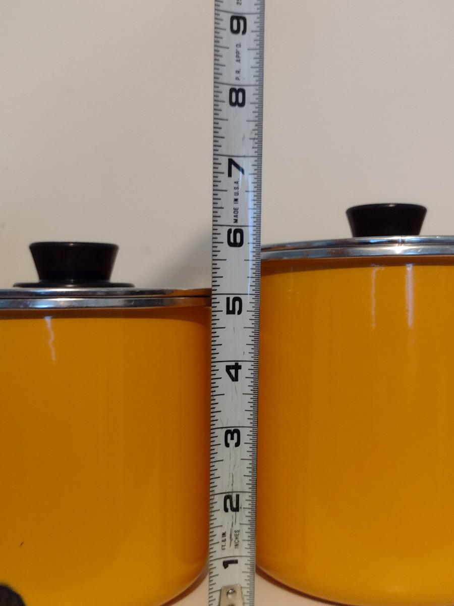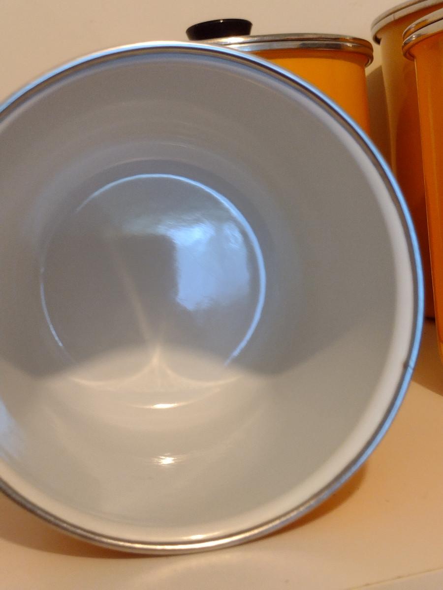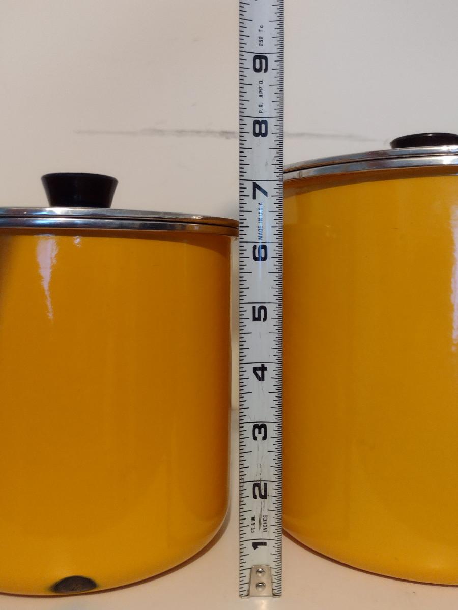 Vintage Enameled Metal Canister Set- Four Pieces. Items have some chipping- see all pictures for condition.