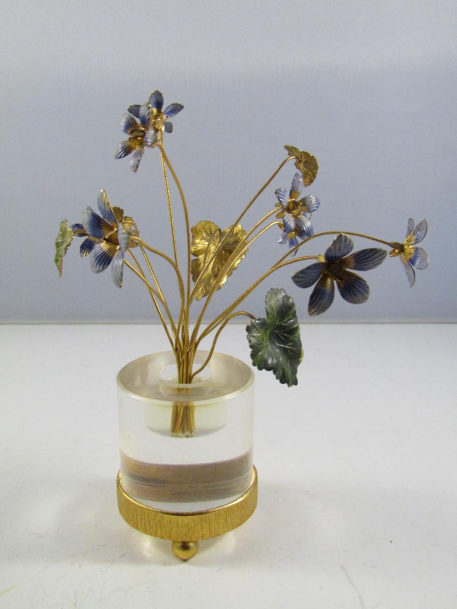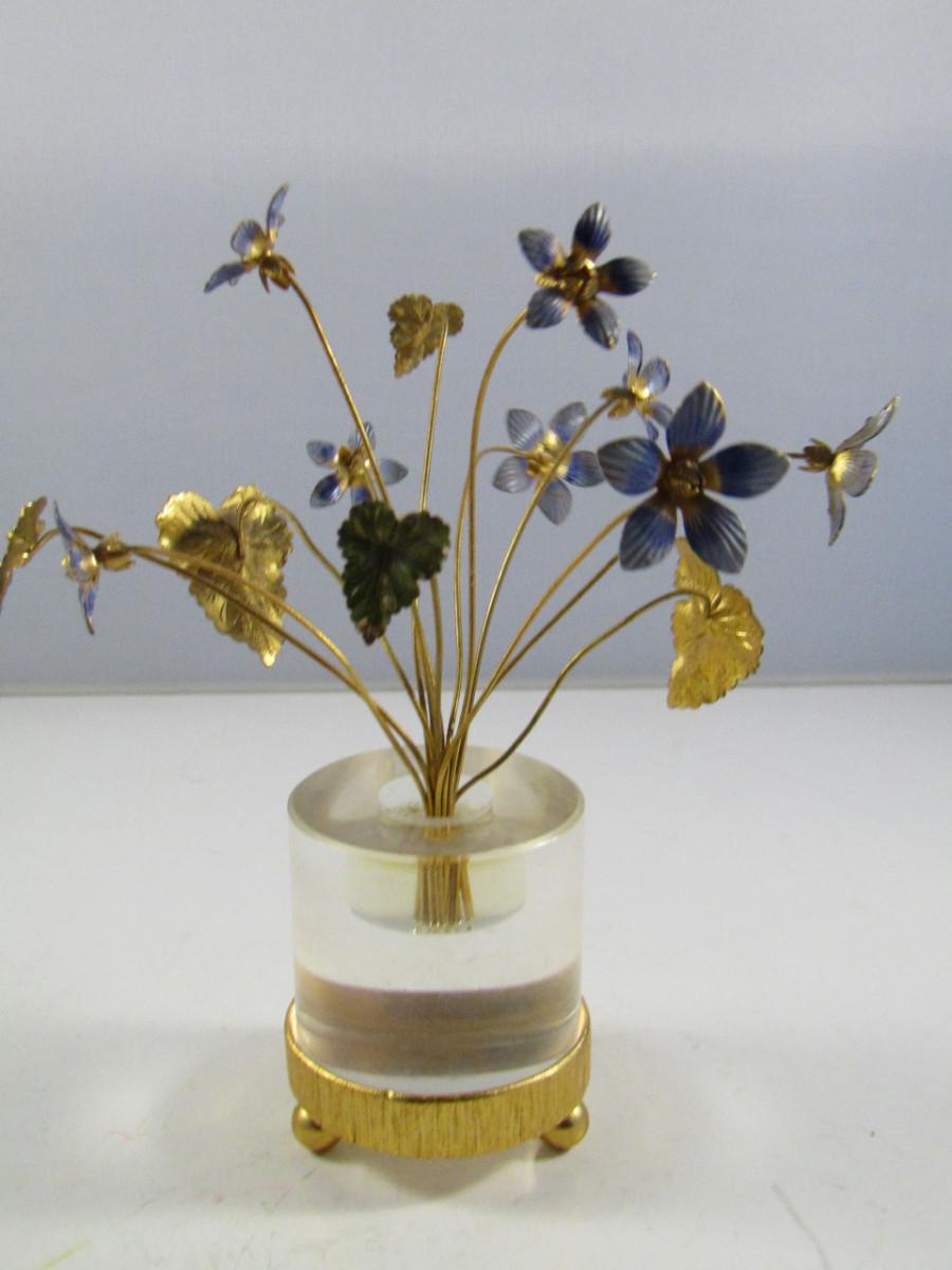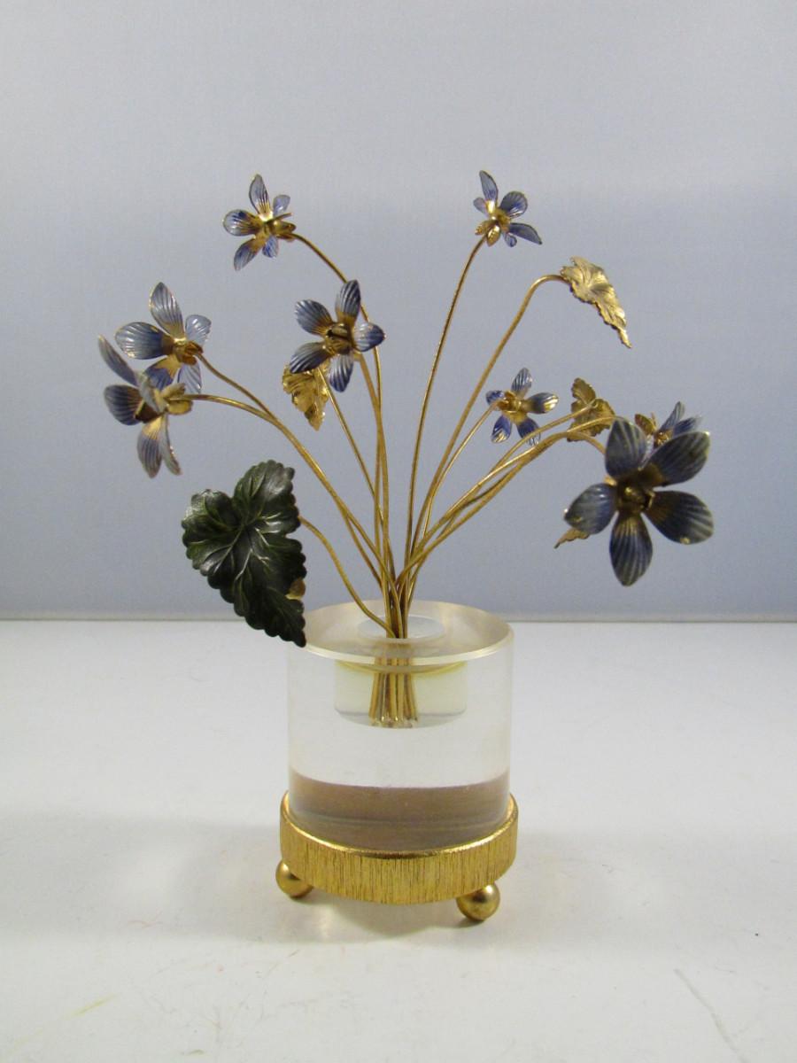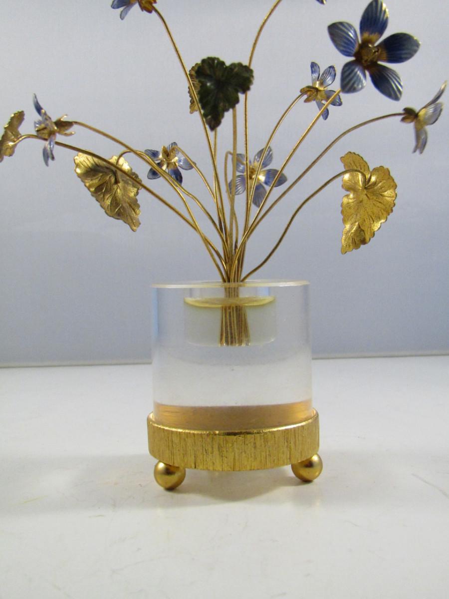 Vintage Enameled Metal Flower Arrangement with Lucite Base