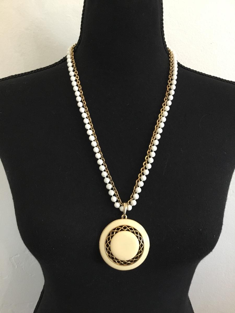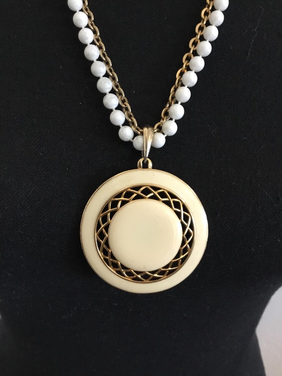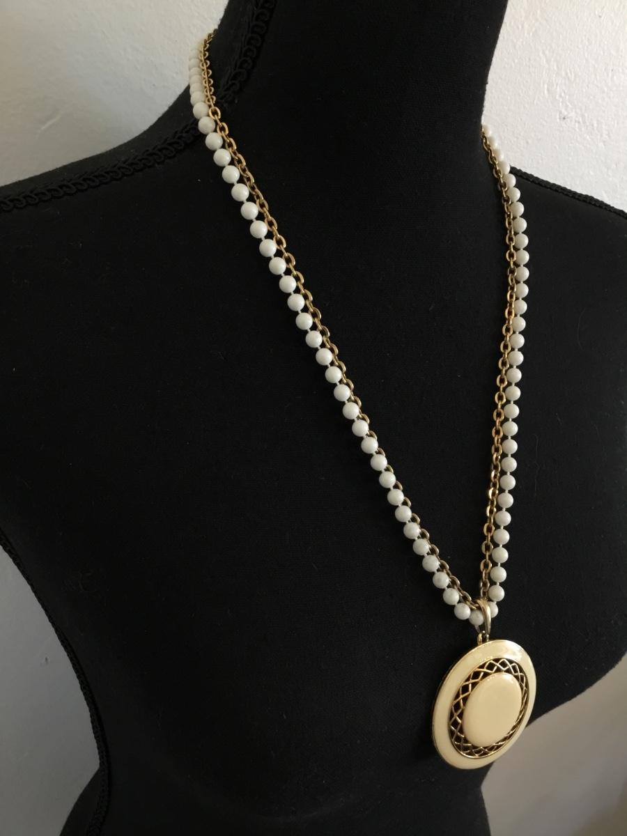 Vintage enameled pendant, and gold tone chain necklace