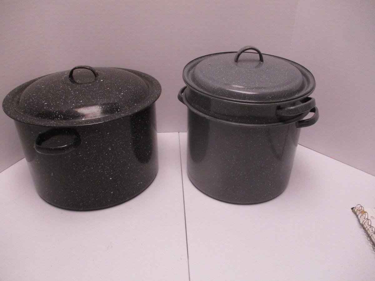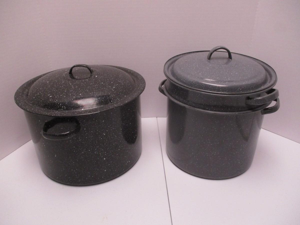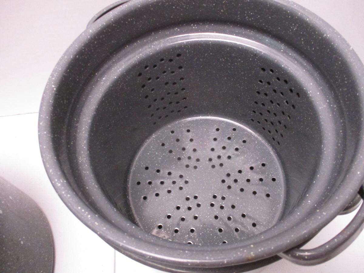 Vintage Enamelware Camping Cooking Pot & Steamer Pot (K)
