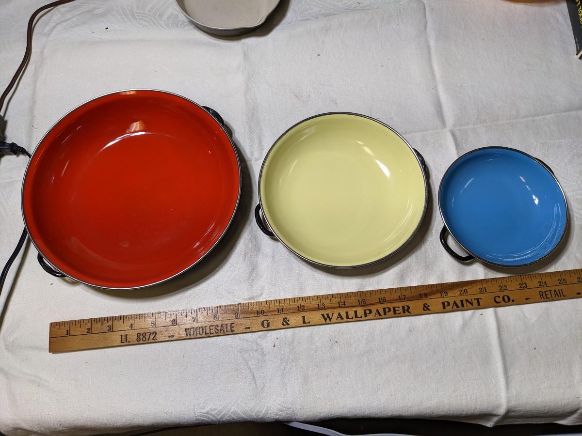 Vintage ENAMELWARE Made In YUGOSLAVIA EMO Celje Sauté Pan Skillet 2 Handles