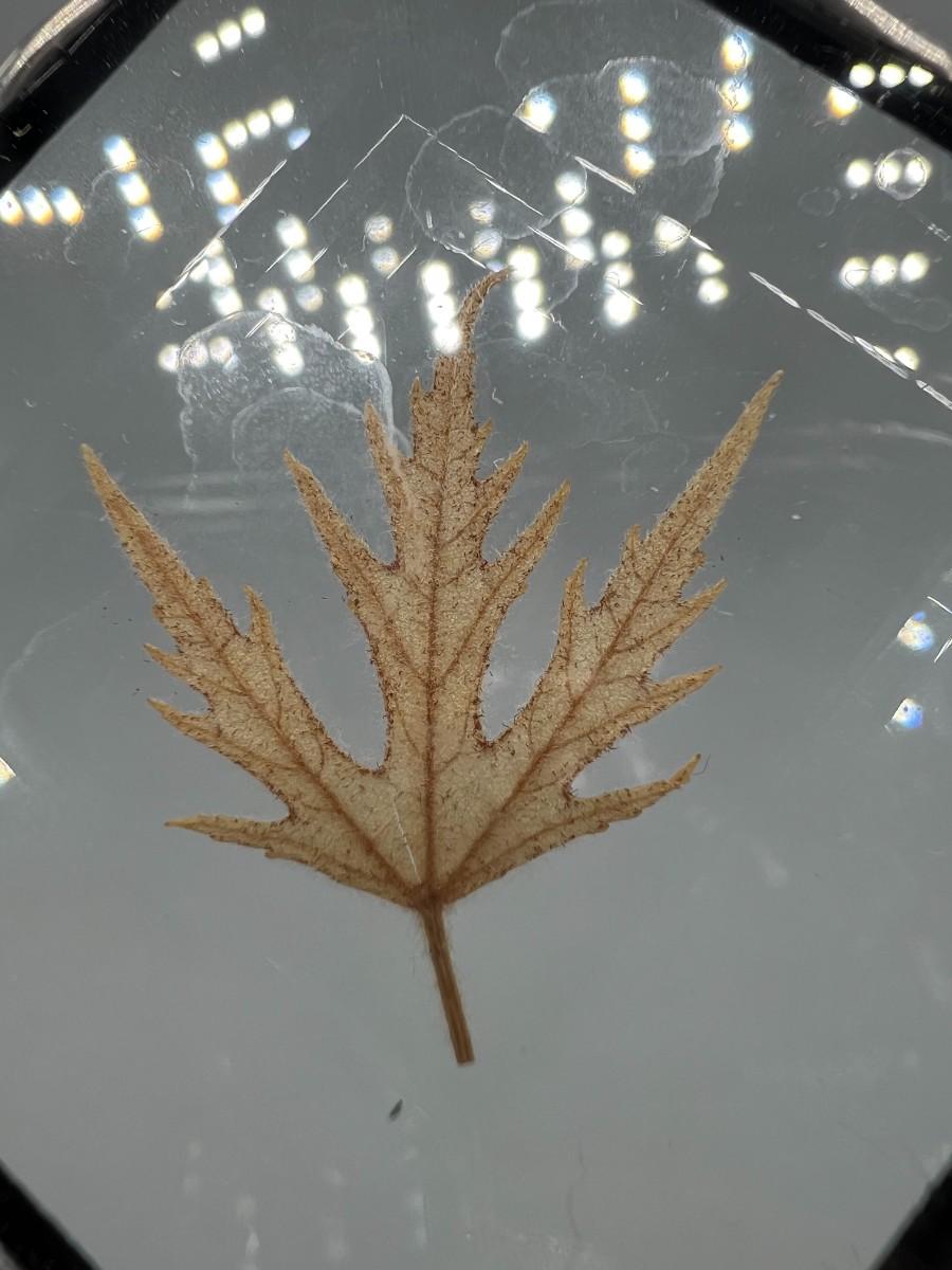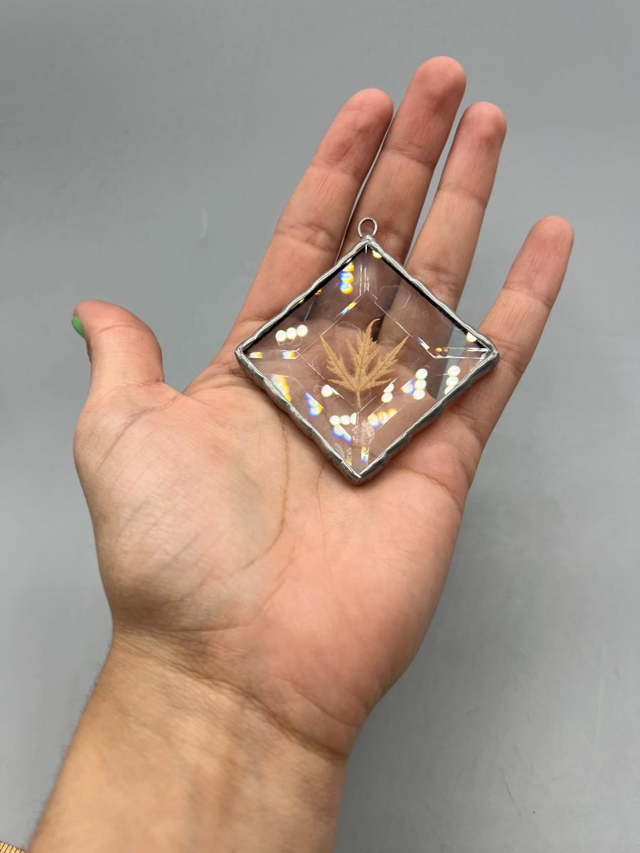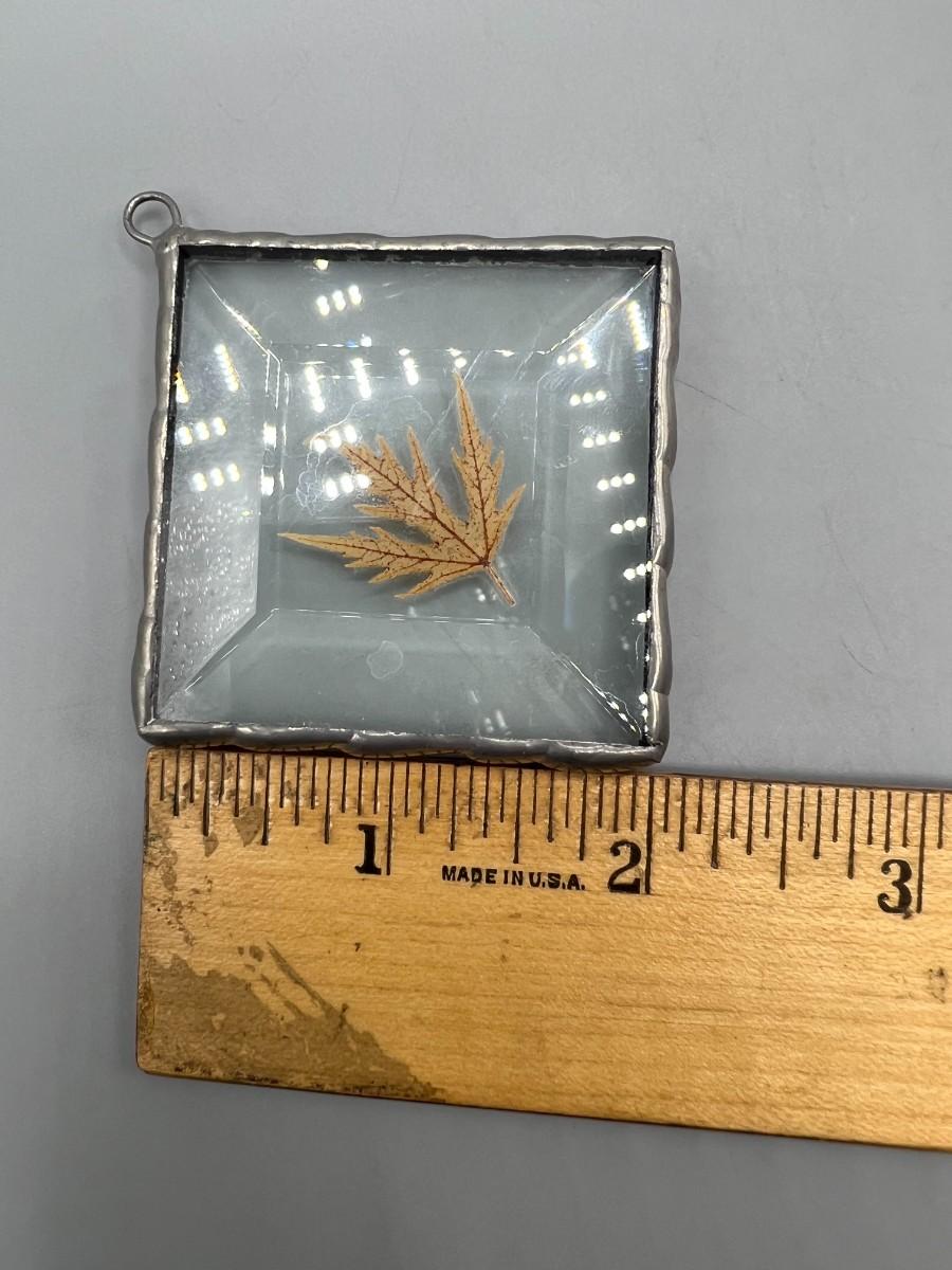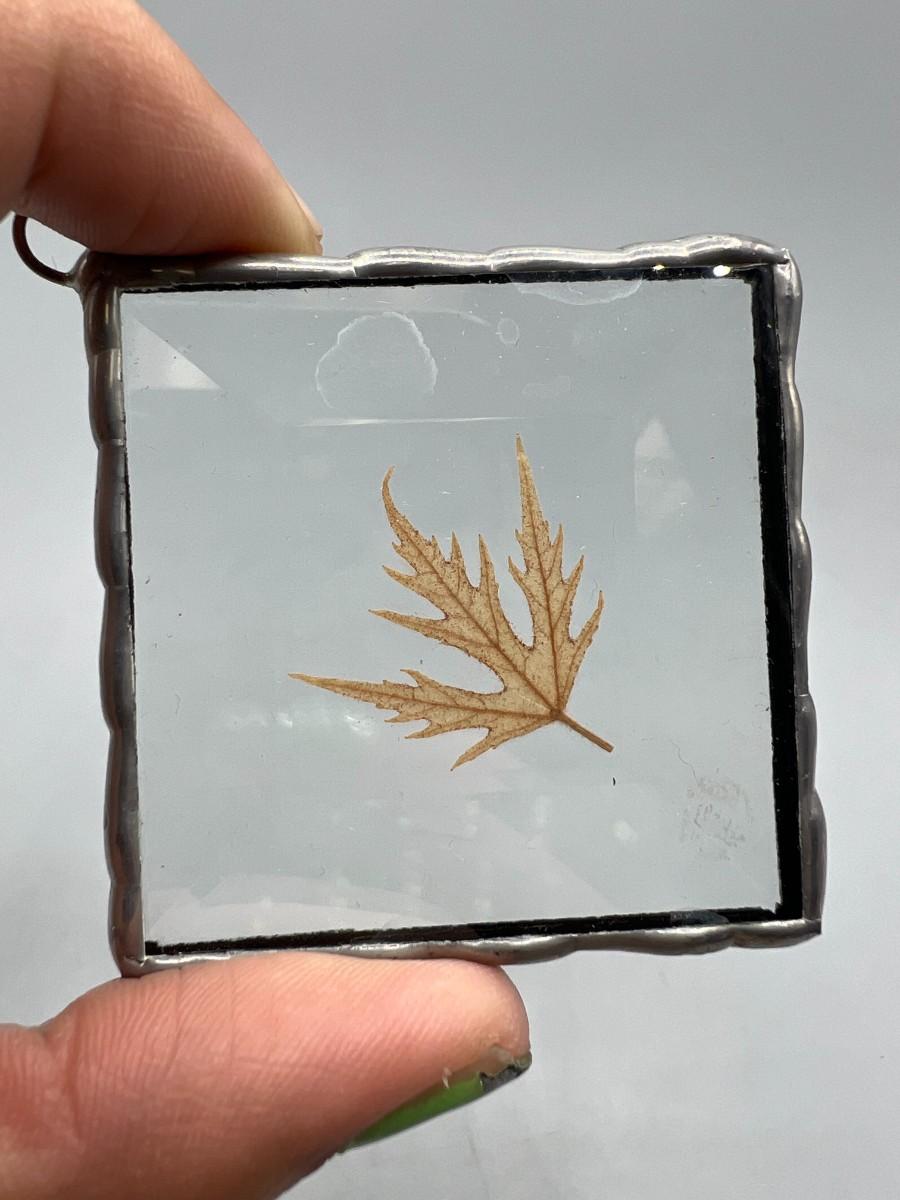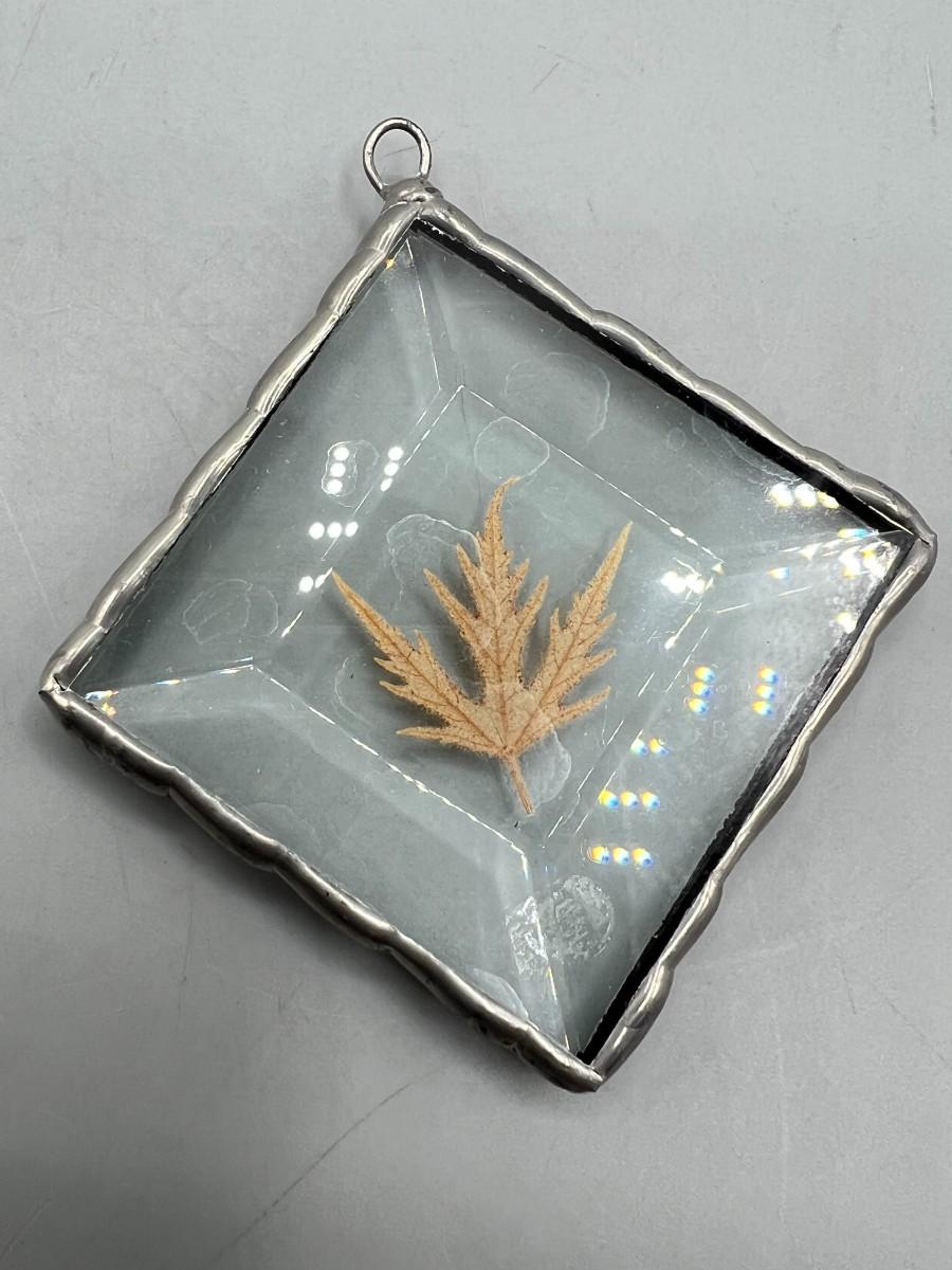 Vintage Encased Leaf Plant In Between Glass Necklace Pendant Charm