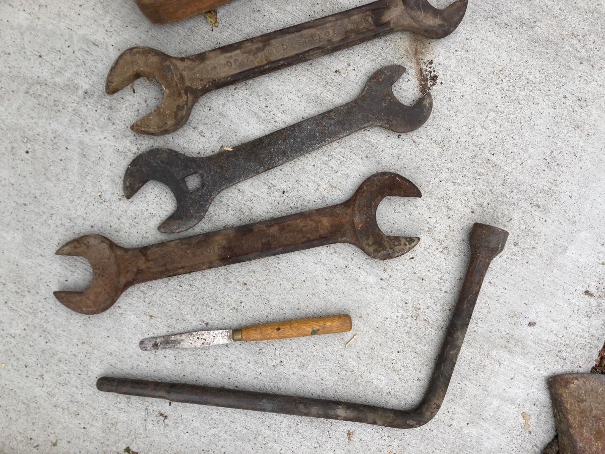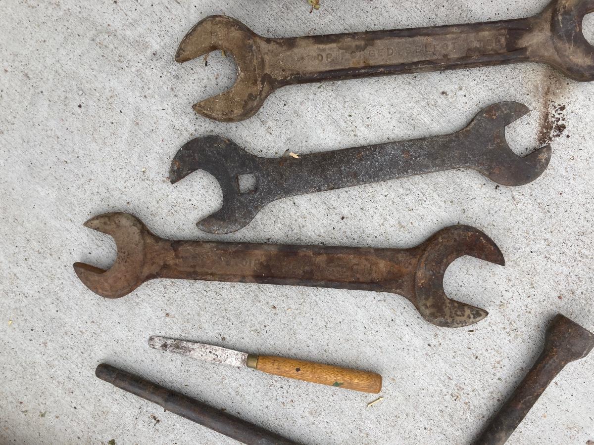 VINTAGE END WRENCHES, TIRE IRON, AND OTHER ITEMS