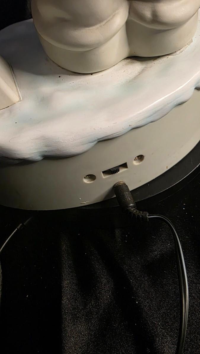 Crafted with the signature rounded features and muted tones popular in late 20th-century devotional and keepsake décor, this piece functions as a decorative lamp and musical sculpture. The base houses both the electrical connection and the internal mechanism, designed to bring a soft glow and nostalgic ambiance to a nursery, child’s room, or contemplative space. Light surface wear is consistent with age and display, contributing to its vintage character without detracting from presentation.