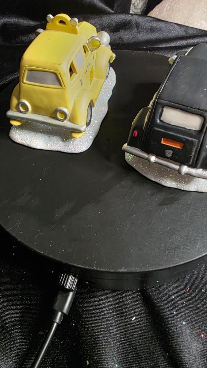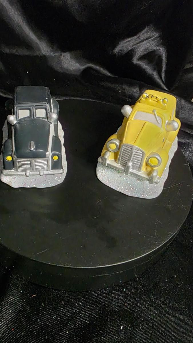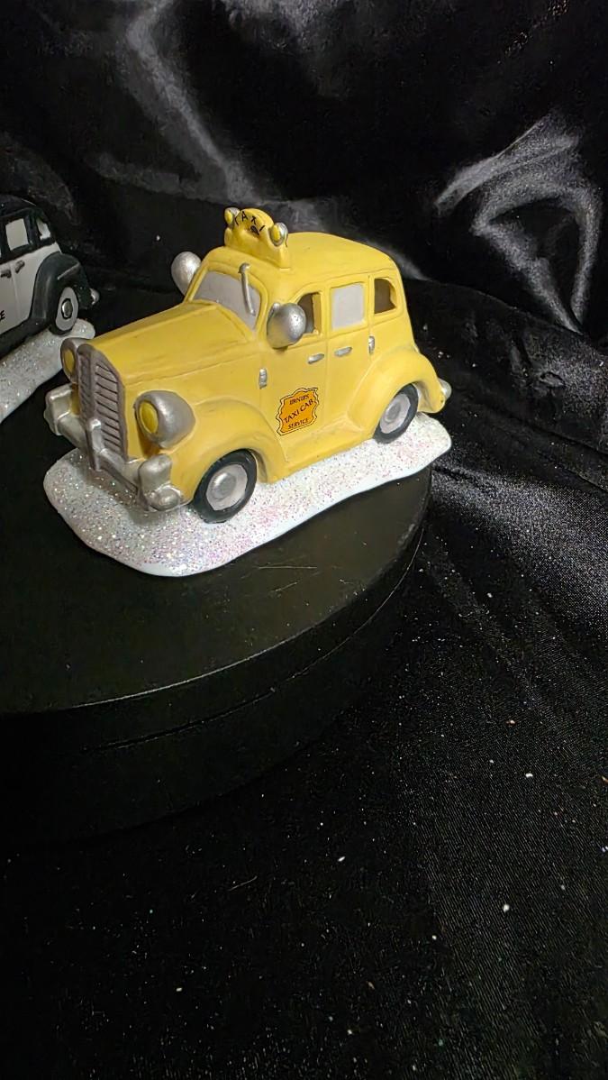 Vintage Enesco Porcelain Christmas Village Cars – Police Cruiser & Yellow Taxi Pair