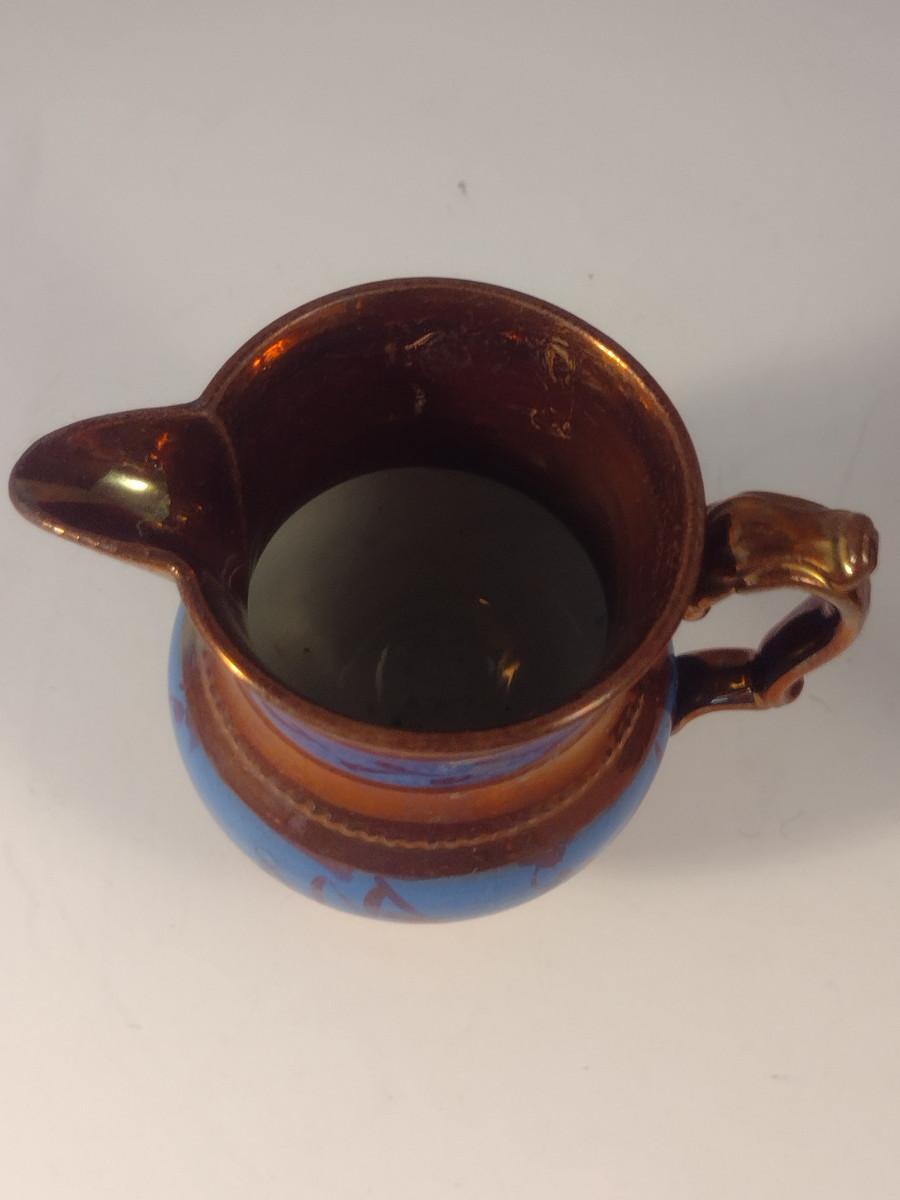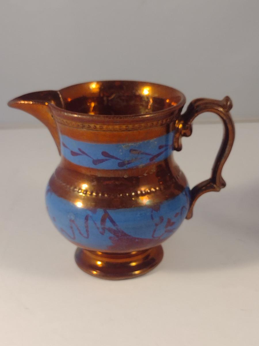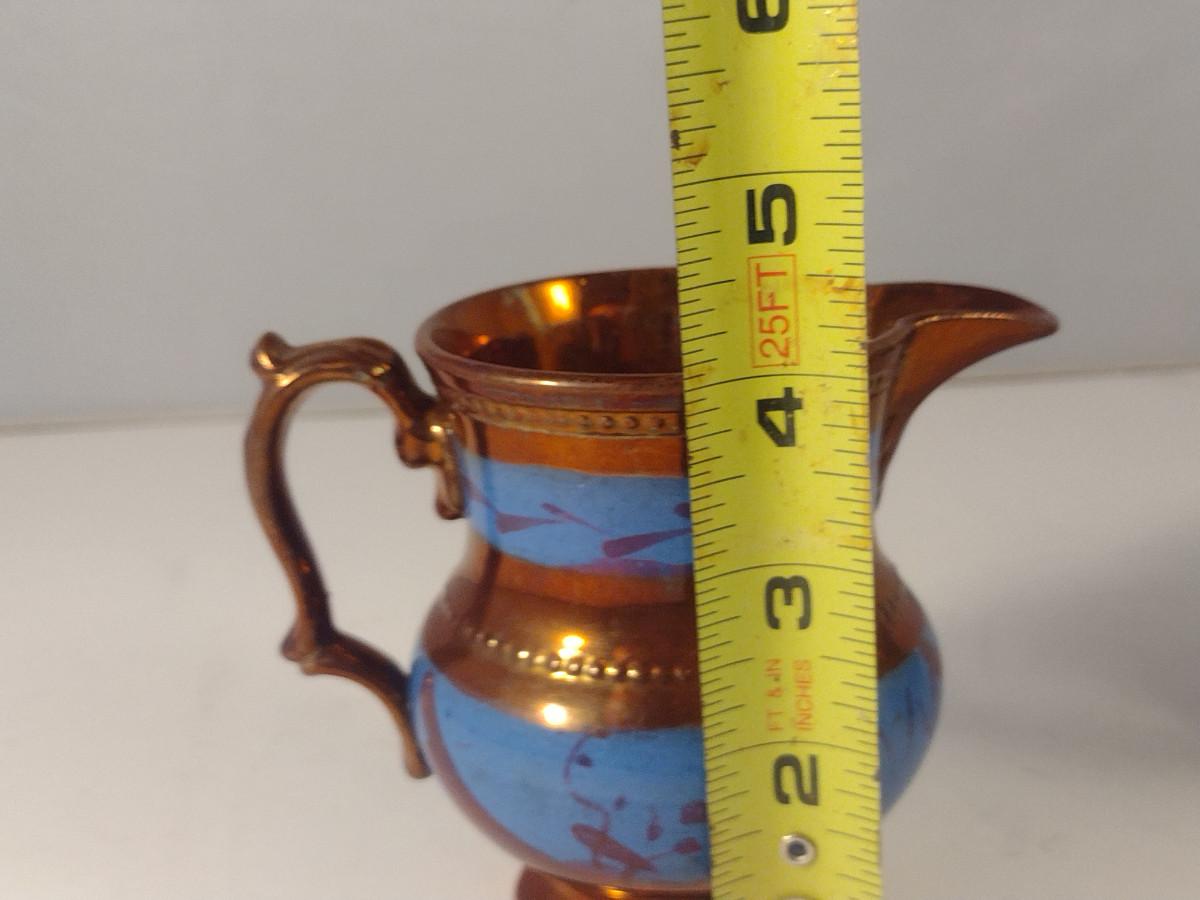Vintage English Lusterware Pitcher- Copper Color with Blue Bands- Approx 4" Tall