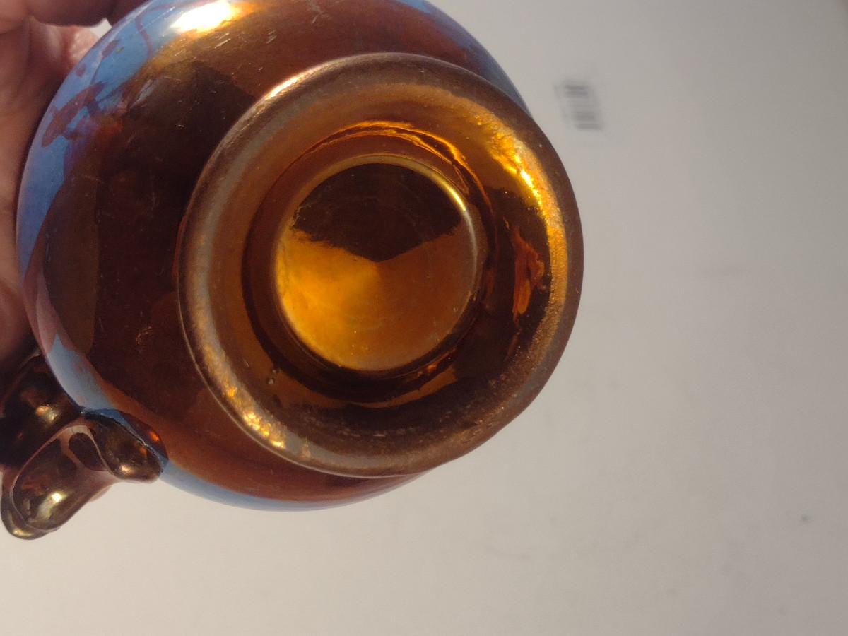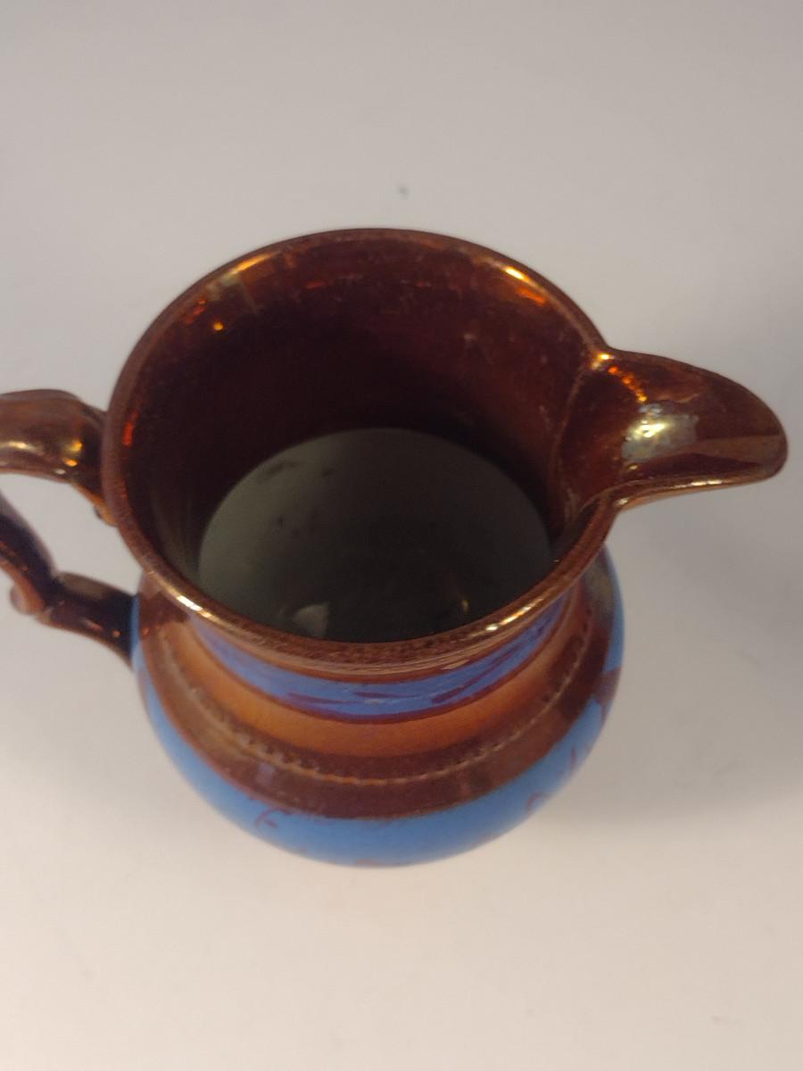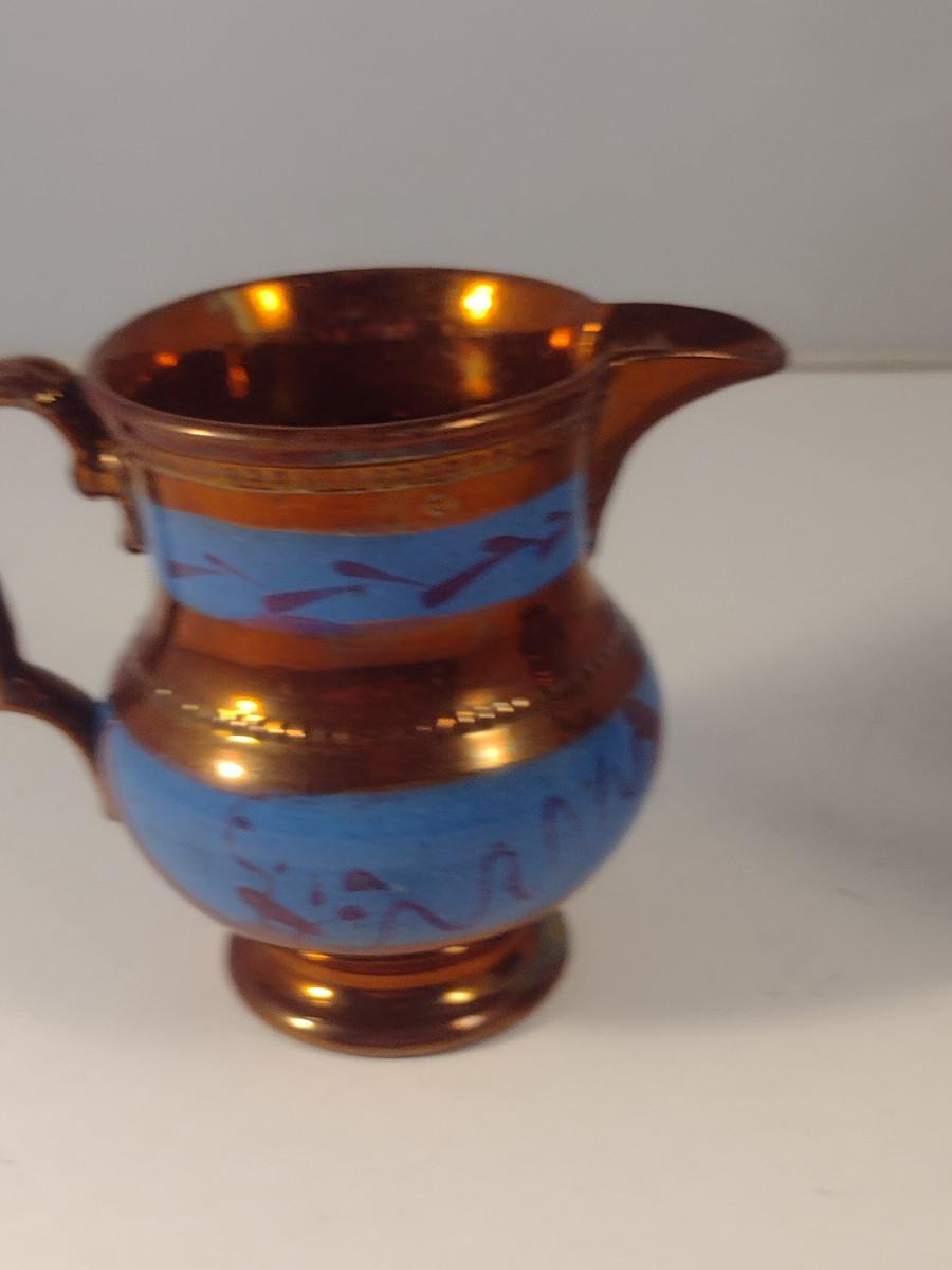 Vintage English Lusterware Pitcher- Copper Color with Blue Bands- Approx 4" Tall