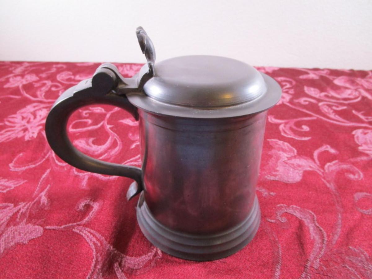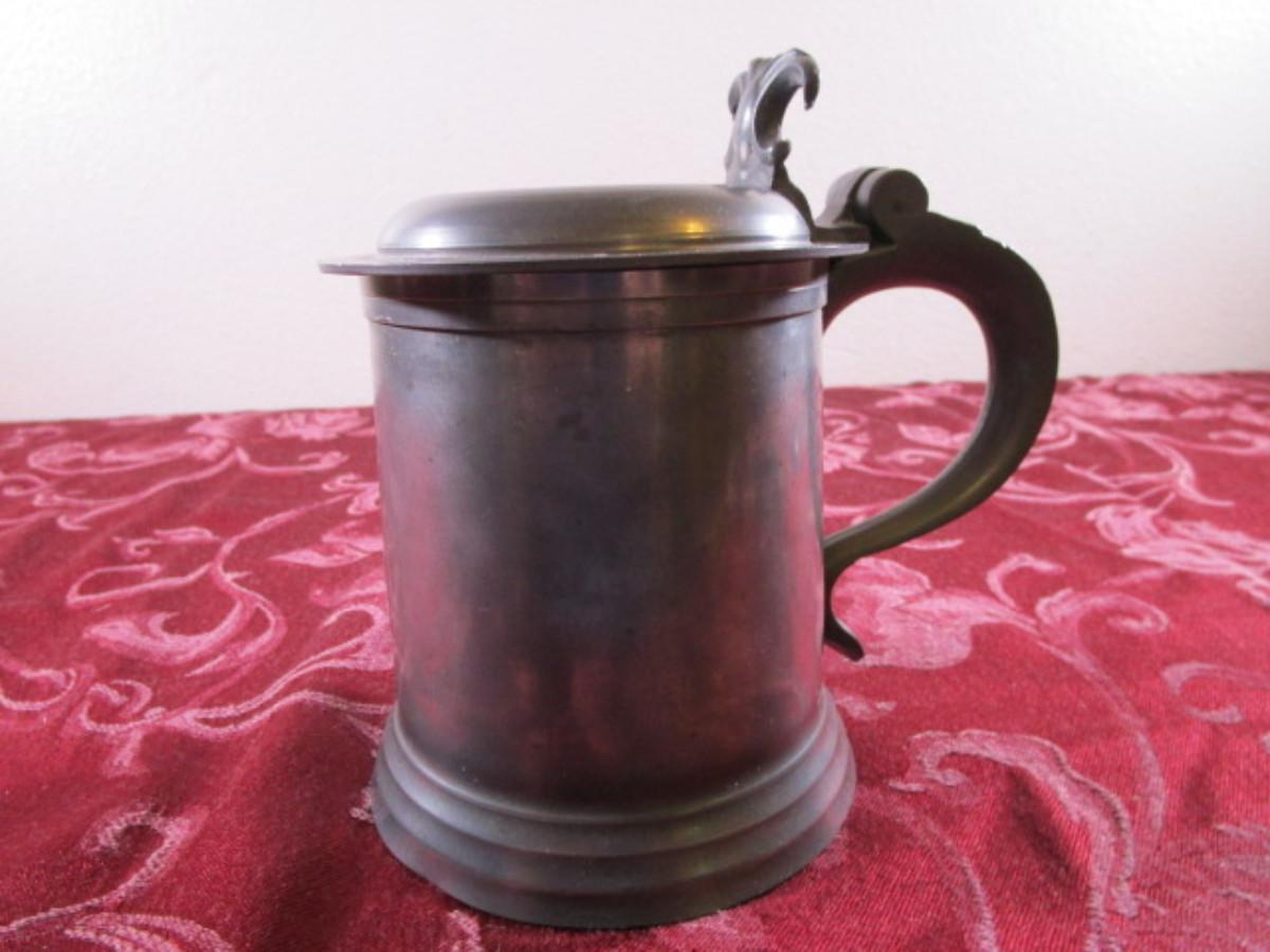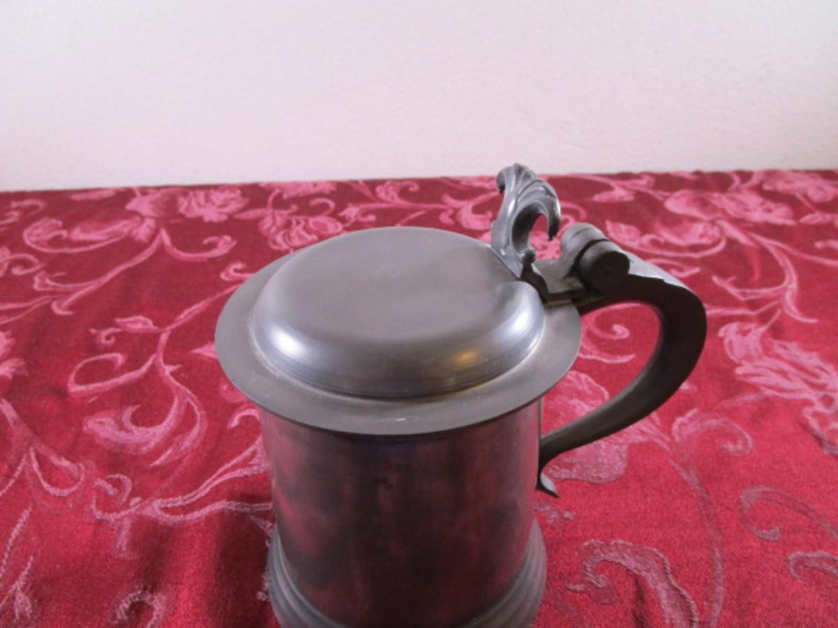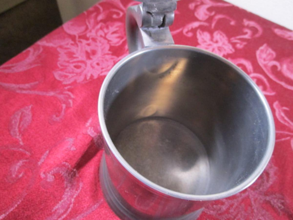 Vintage English Renaissance Style Pewter Lidded Tankard