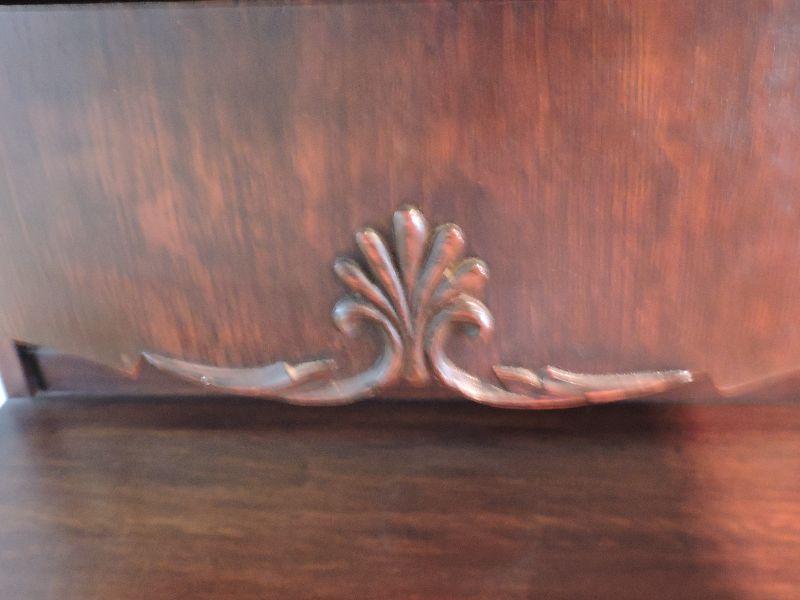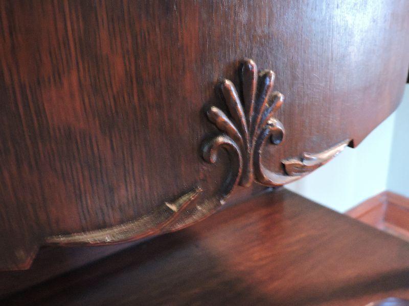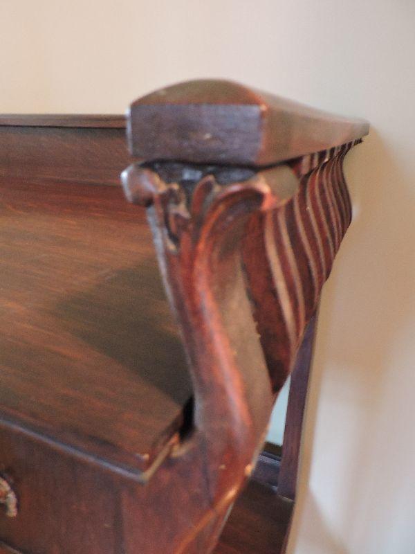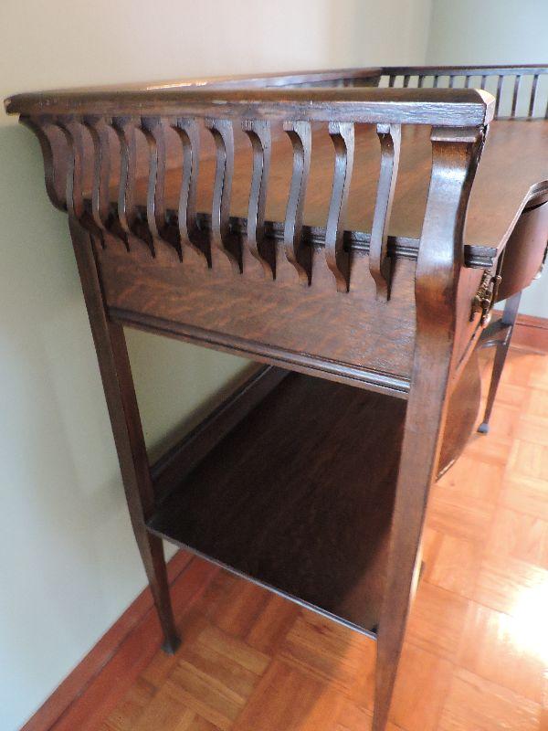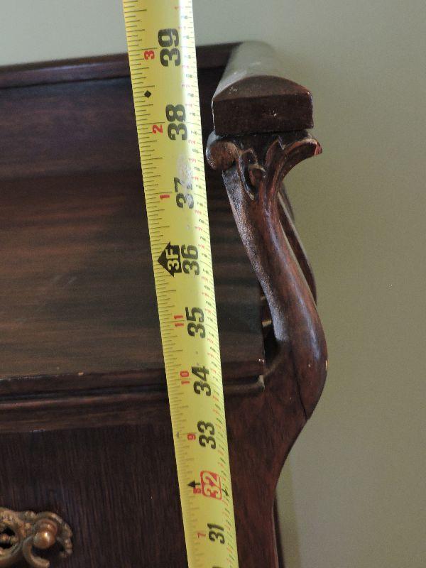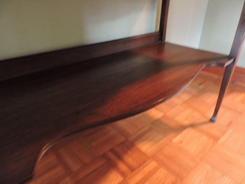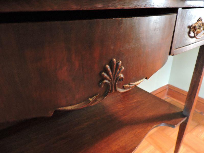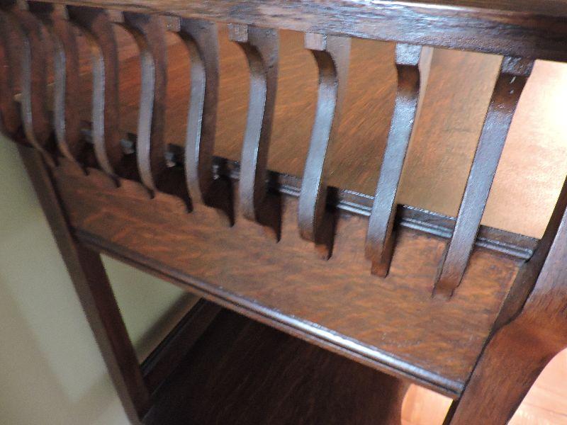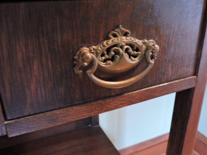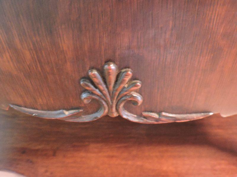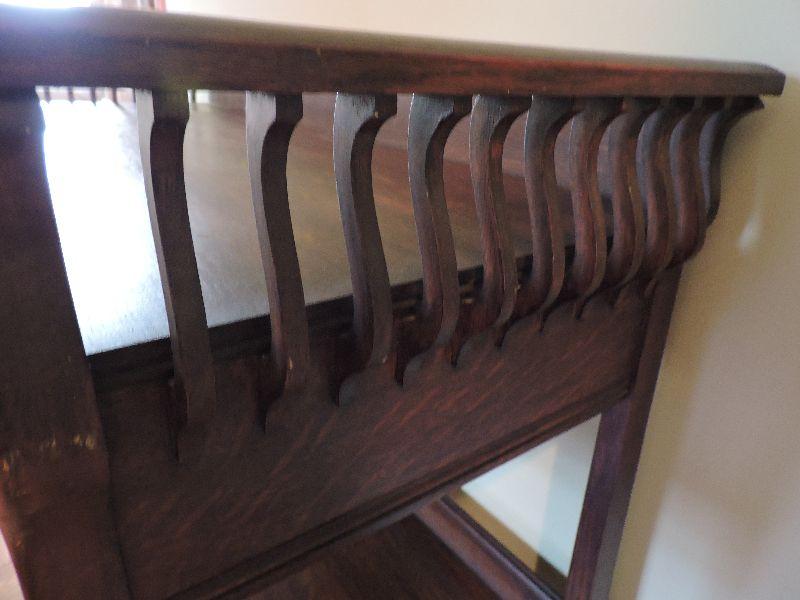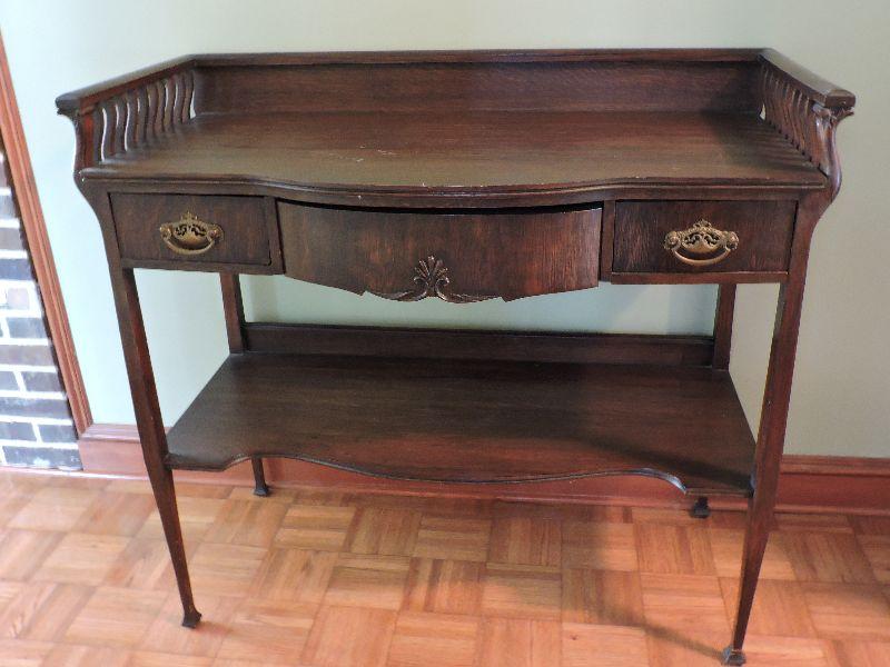 All solid oak table for entry, or use your imagination for this beautiful piece. Damaged areas are pictured. Bring help to move. Please read Terms and Conditions before placing a bid. Pick up is Friday, October 25th between 4 and 7, and Saturday, October 26th between 9 and 1. Props included in photos are not included in listing. All measurements are approximate. Comes from home with cats.