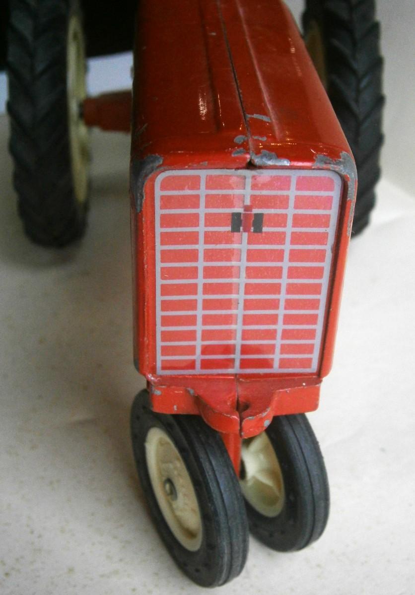 Vintage ERTL Farm Toy IH International Harvester Tractor, diecast metal with rubber tires, 8 in long