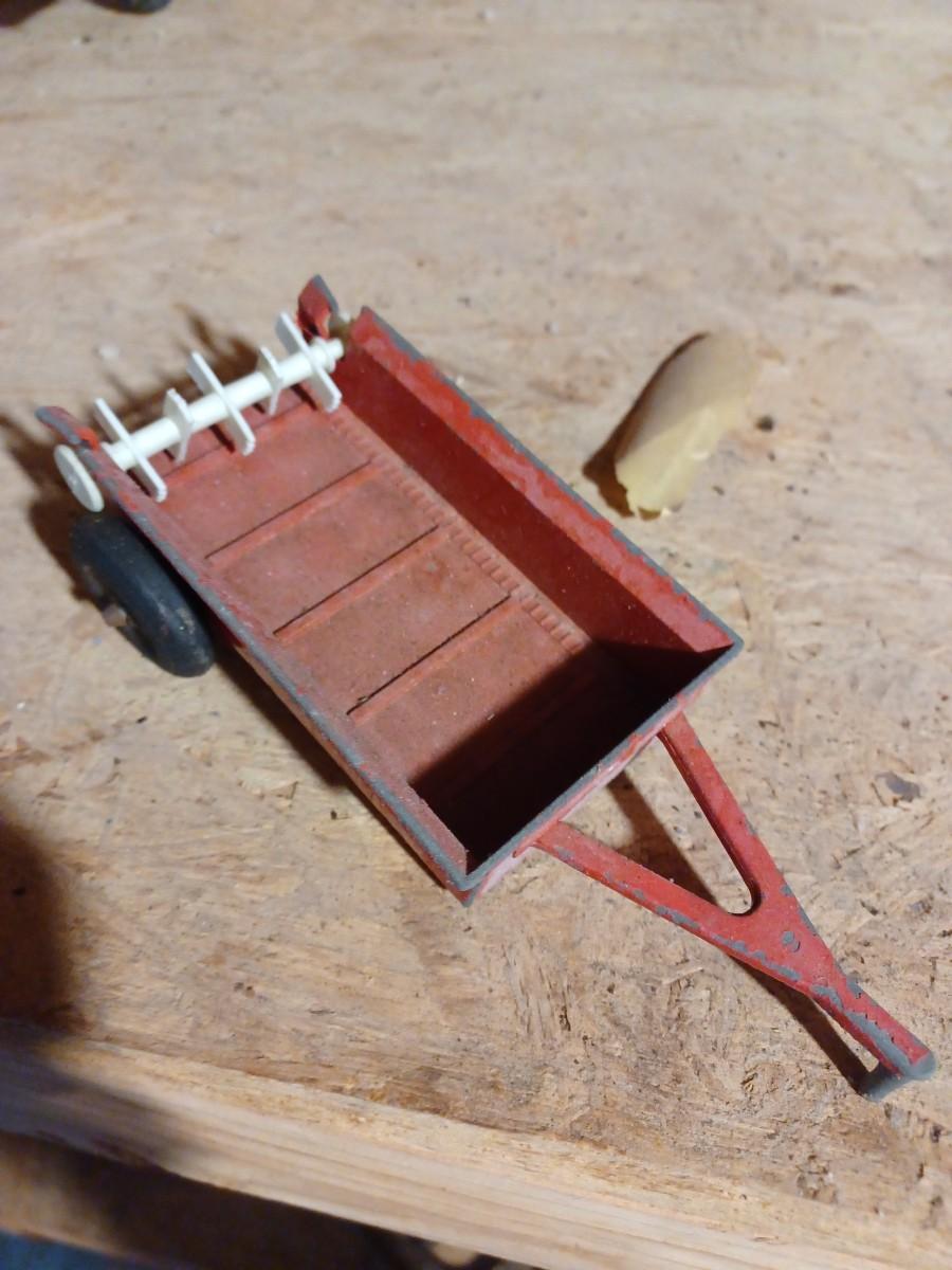 RED MANURE SPREADER TRAILER (missing the spreader)