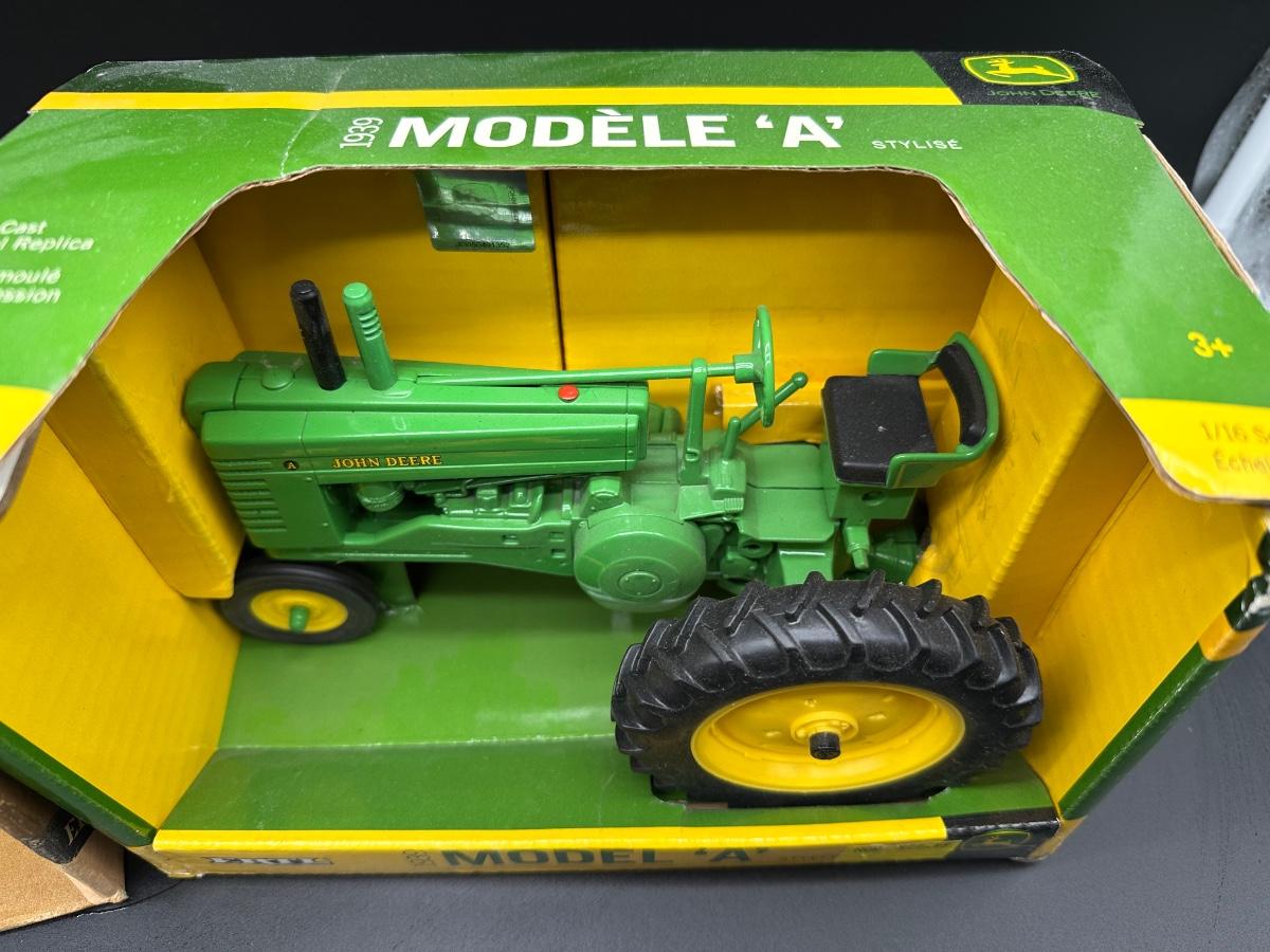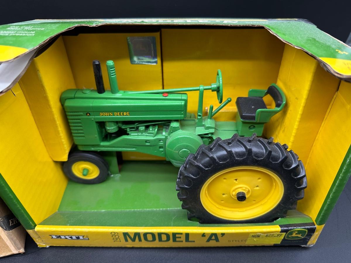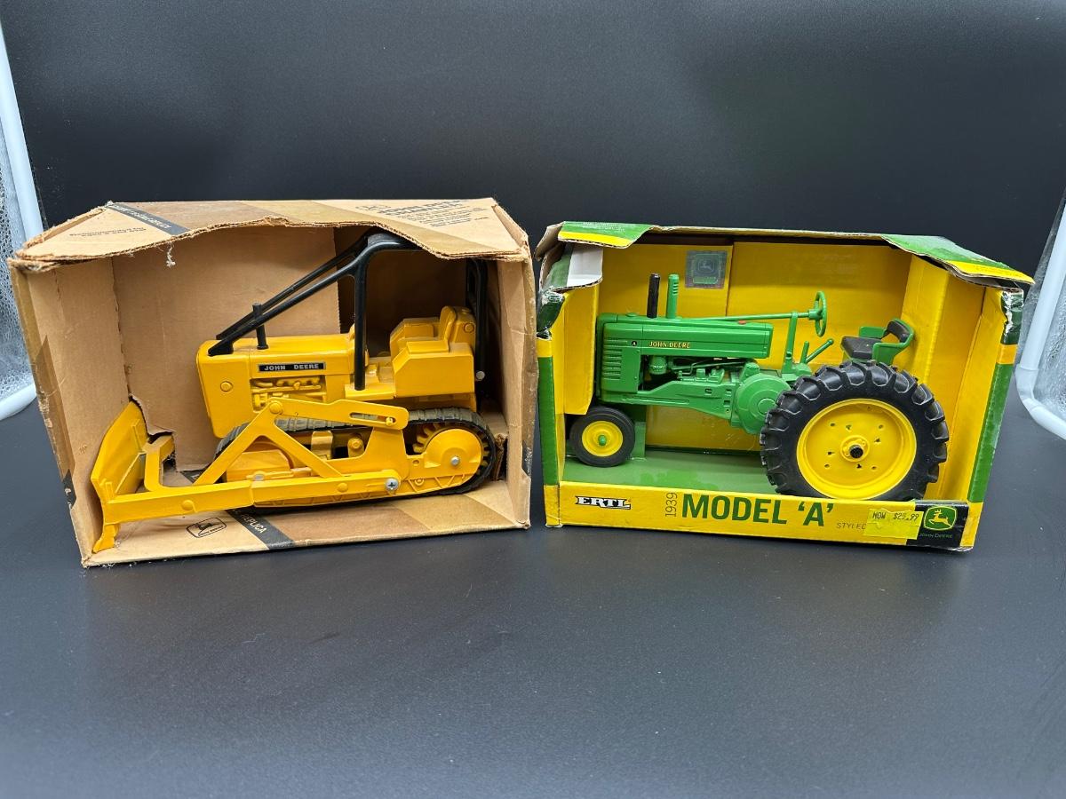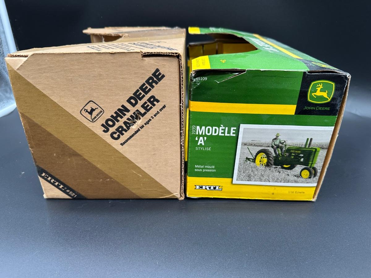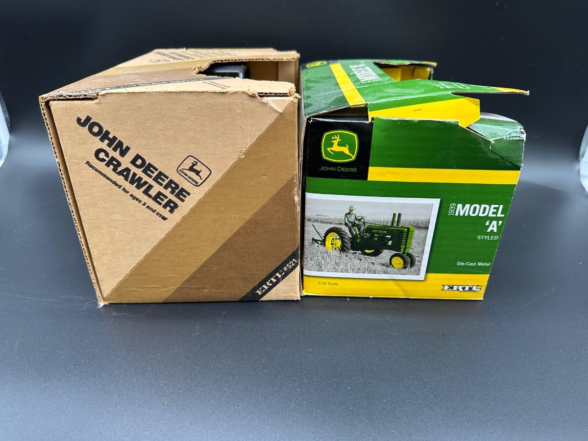 Vintage Ertl John Deere Die-Cast Models (2) – 1/16 Scale Crawler & 1939 Model A Tractor w/ Boxes