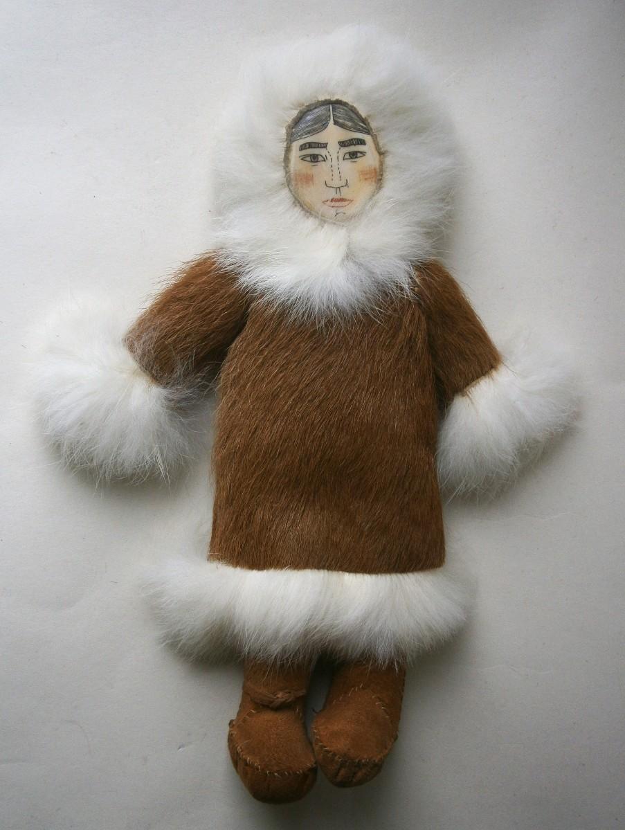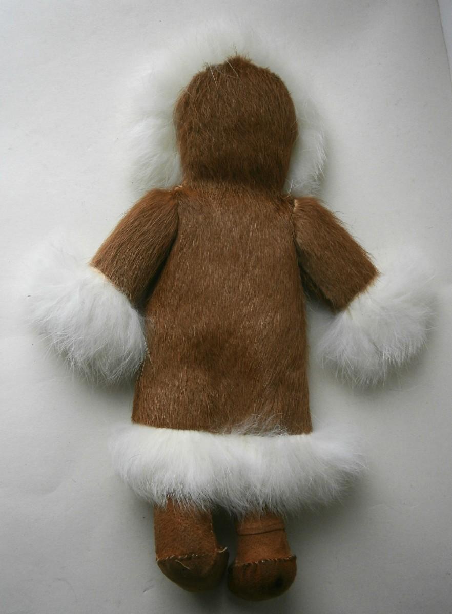 Vintage Eskimo Doll, 9 1/2 in. tall, suede and animal fur.