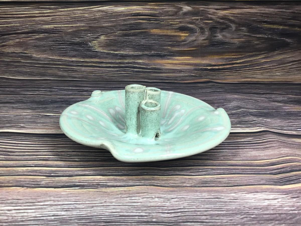 Vintage Essence Burner Ashtray Floral Frog Bowl Dripware Pottery Signed