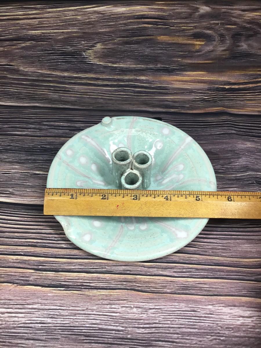 Interesting vintage pottery piece, artist signed. Looks like a ceramic vintage essence burner possibly a stoneware floral frog vase bowl. It has no significant scratches or chips. Measures 5 1/2" in diameter.