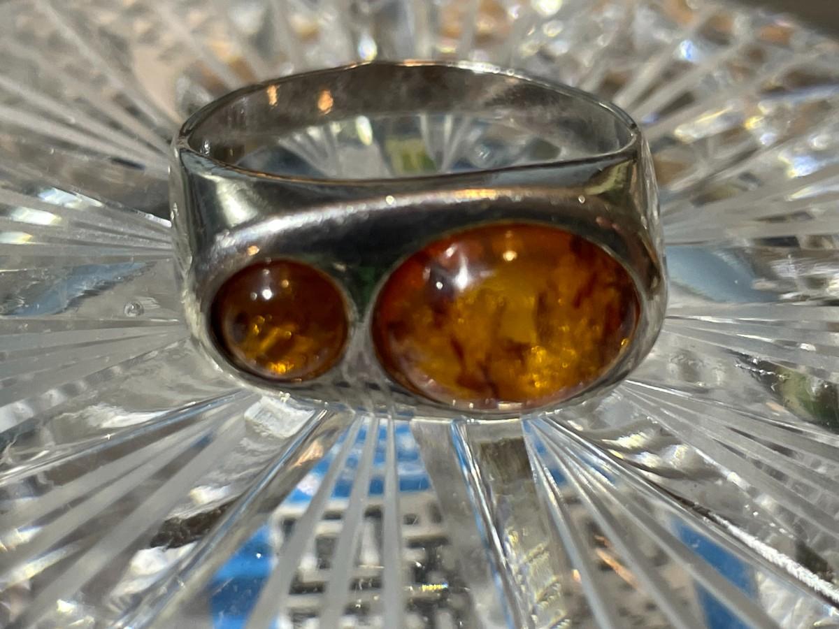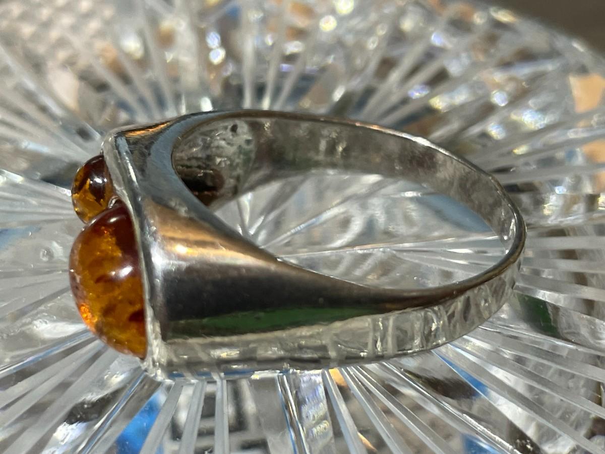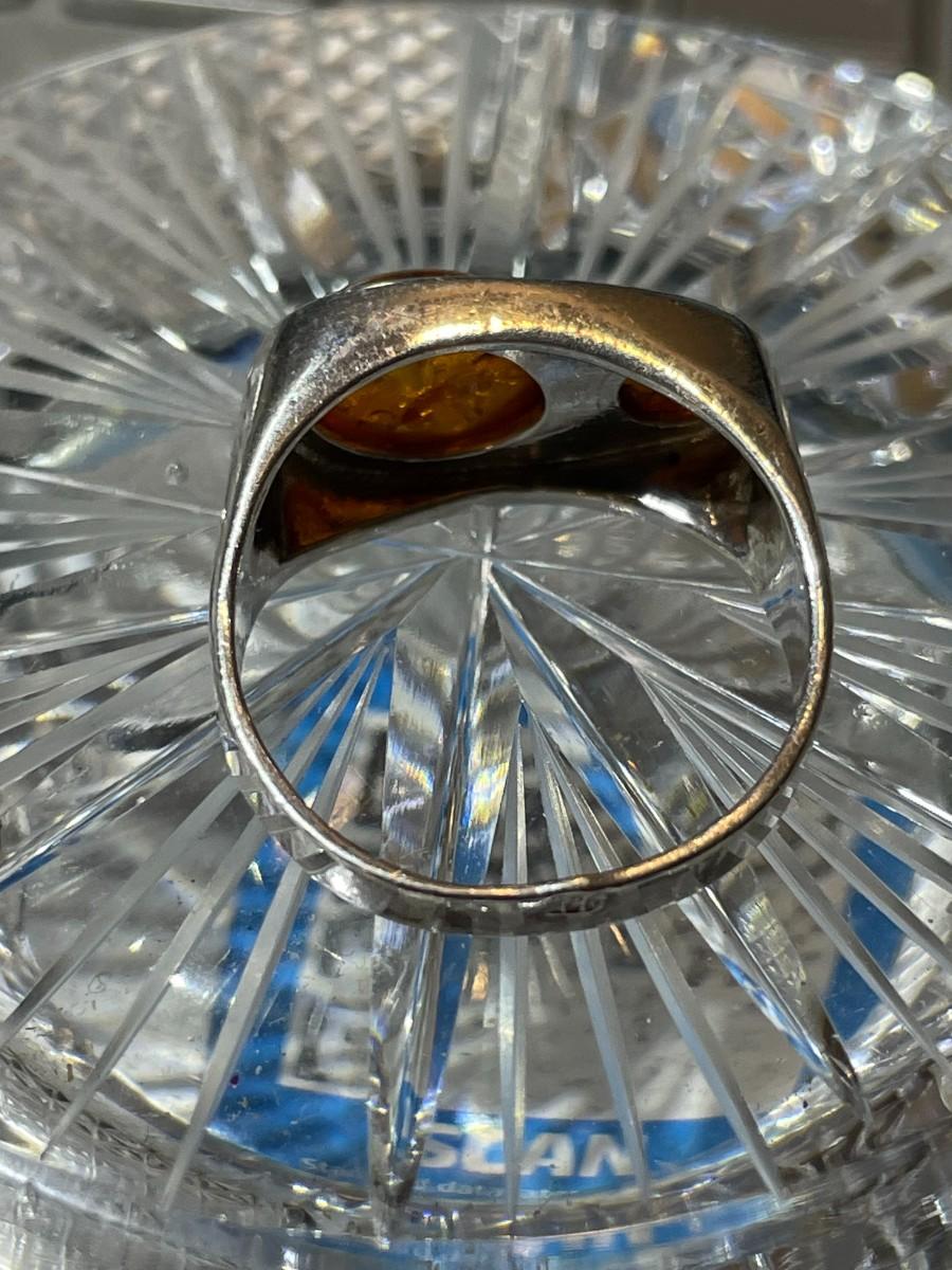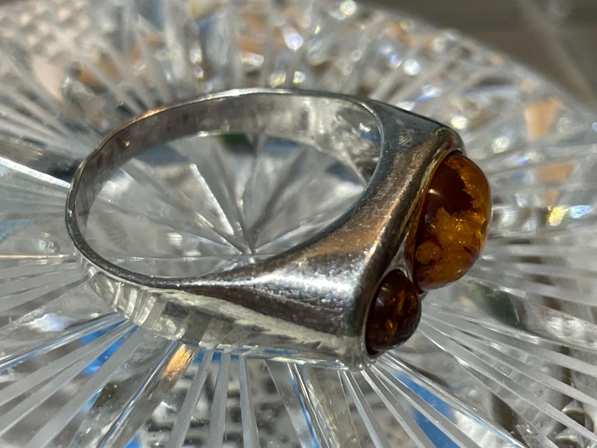 Vintage Estate .925 Sterling Silver Amber Ring Size-9 in Good Preowned Condition. $5 Domestic Shipping.