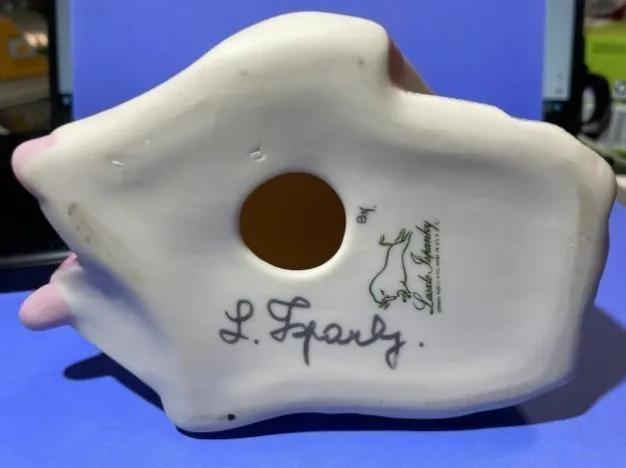 Vintage Estate Laszlo Ispanky Hand Signed - Girl Sitting in Pink Dress Lost in Thought - Folded Hands and Legs with a Flower - Porcelain Figurine 9.5" Tall w/Wooden Base. $15 DOMESTIC INHOUSE SHIPPING.