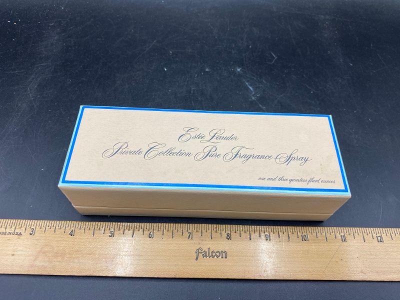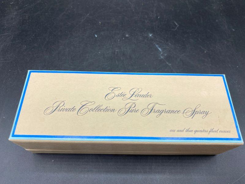 Vintage Estee Lauder Private Collection Pure Fragrance Spray. In original box. 1.75 fl oz size. Bottle looks to be full or almost full.