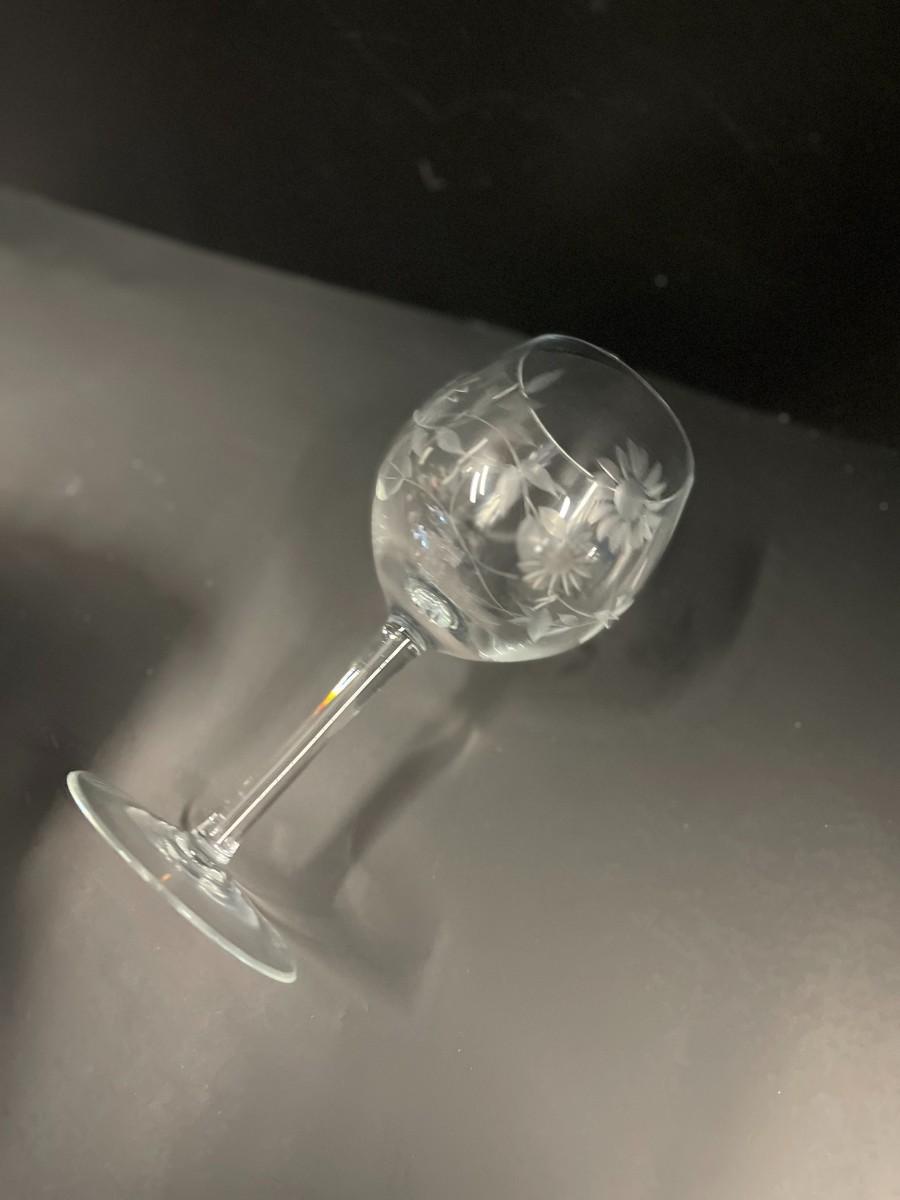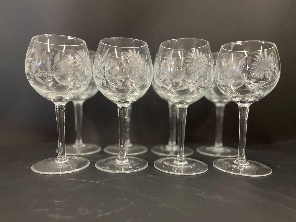 Set of 8 etched 6" cordial glasses. Excellent condition, no chips or cracks. Sunflower pattern. # 1186