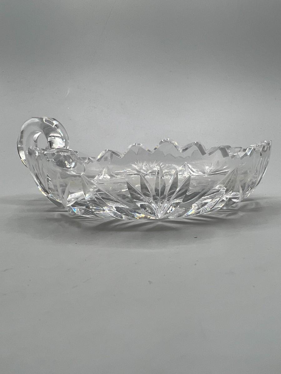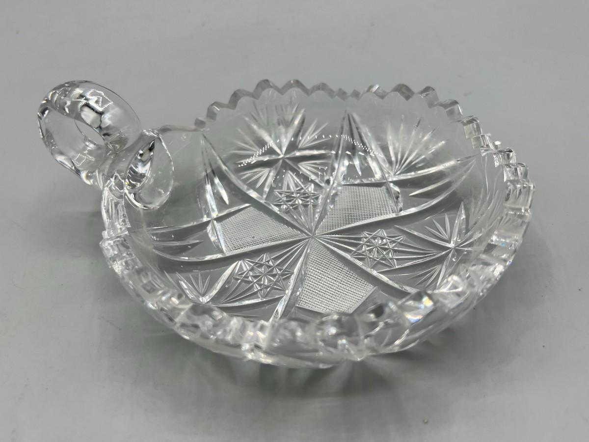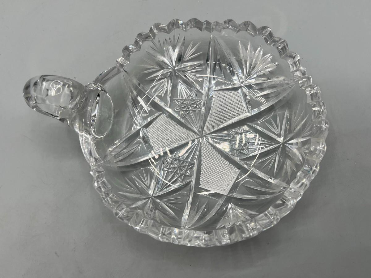 Vintage Etched Crystal Glass Sawtooth Edge Nappy Dish