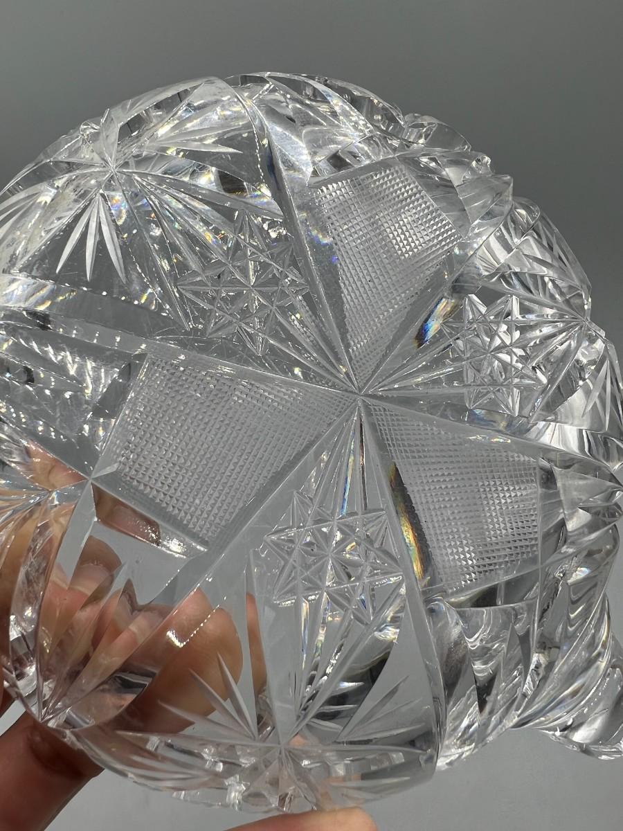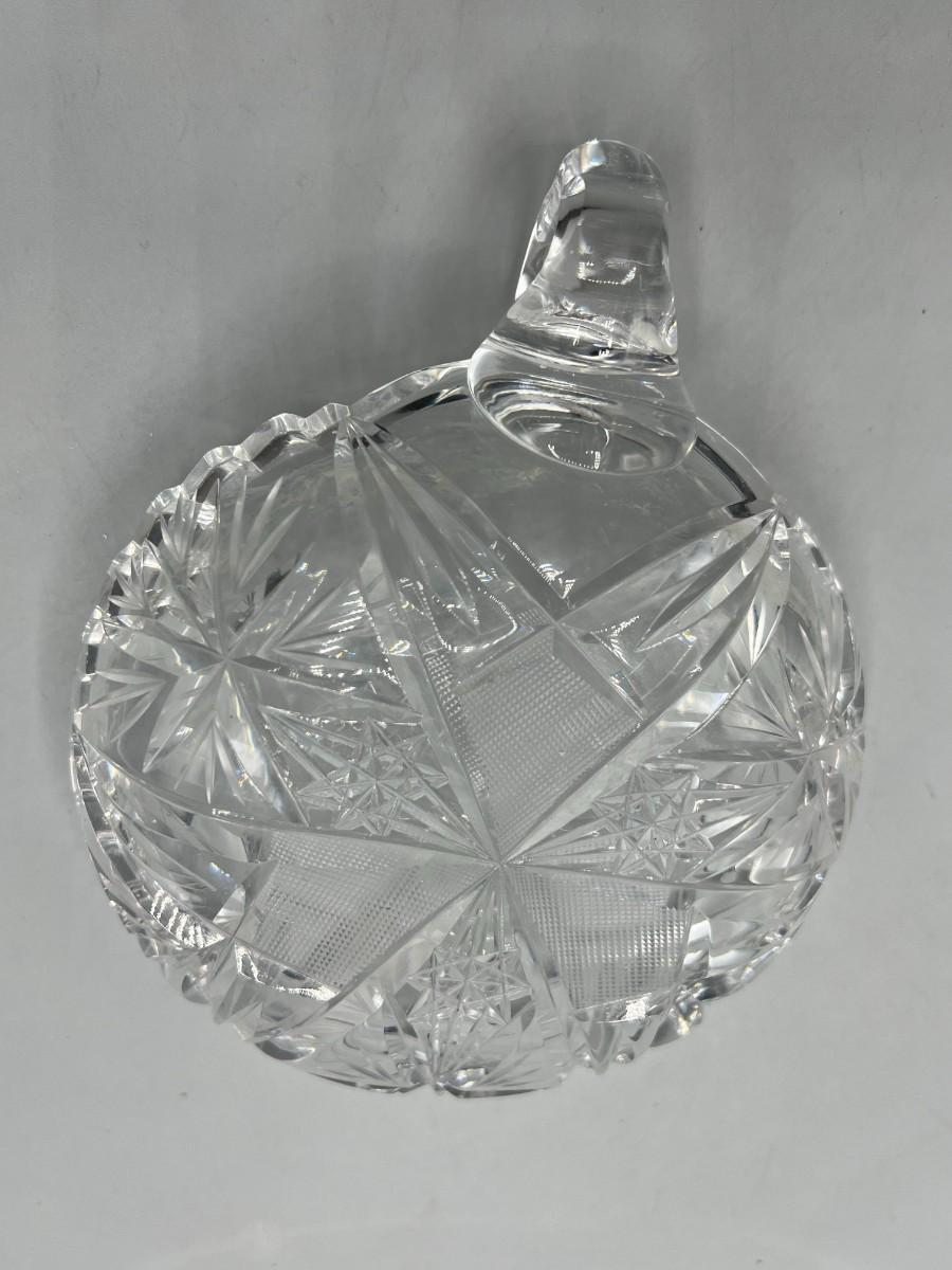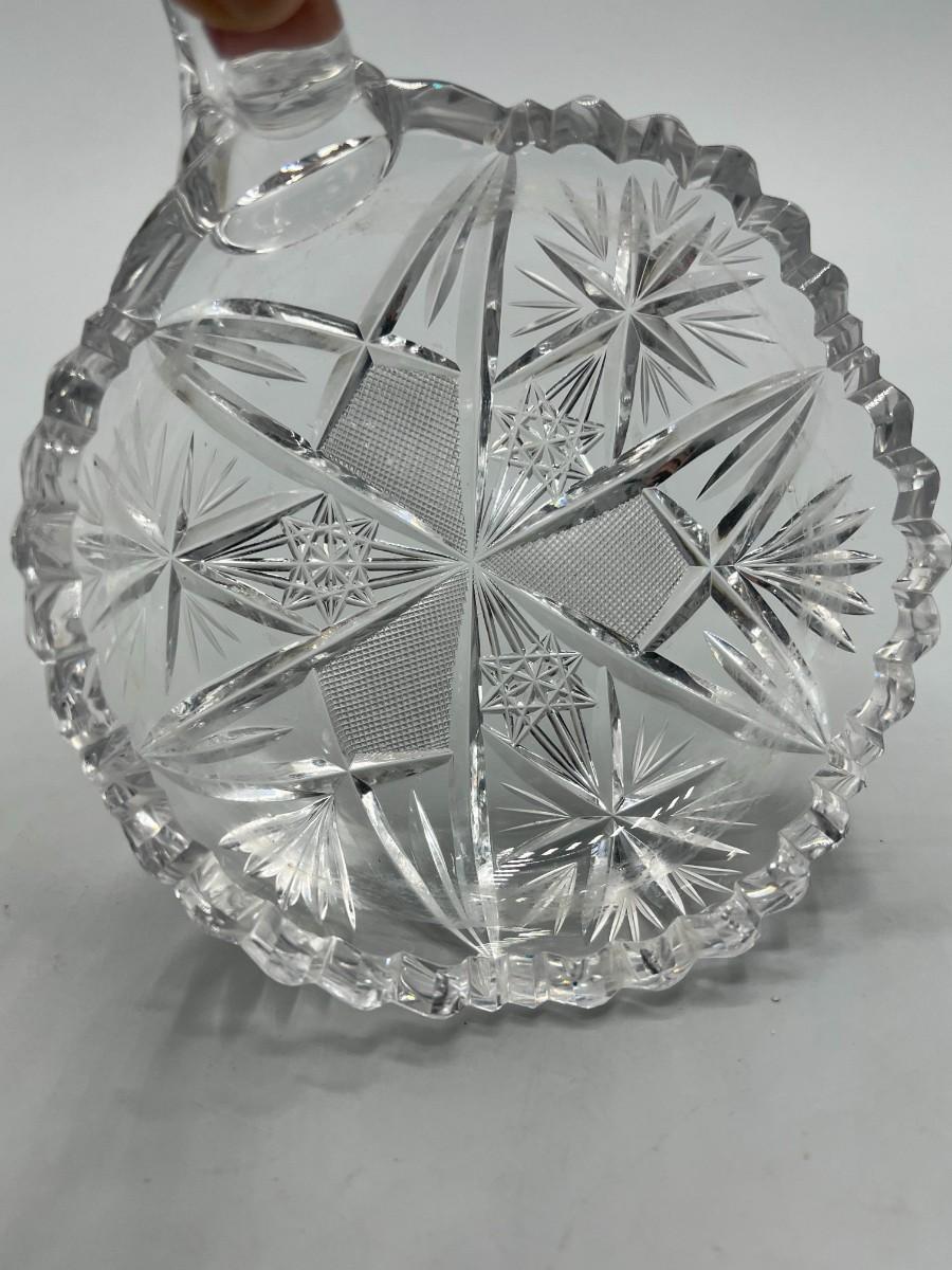 Vintage Etched Crystal Glass Sawtooth Edge Nappy Dish