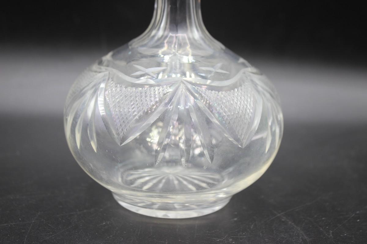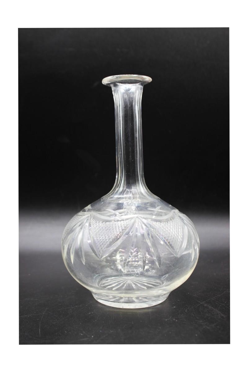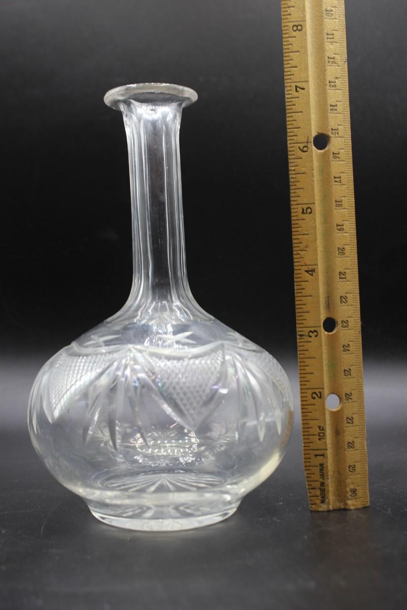 Vintage Etched Crystal Glass Thin Neck Liquor Decanter NO STOPPER
