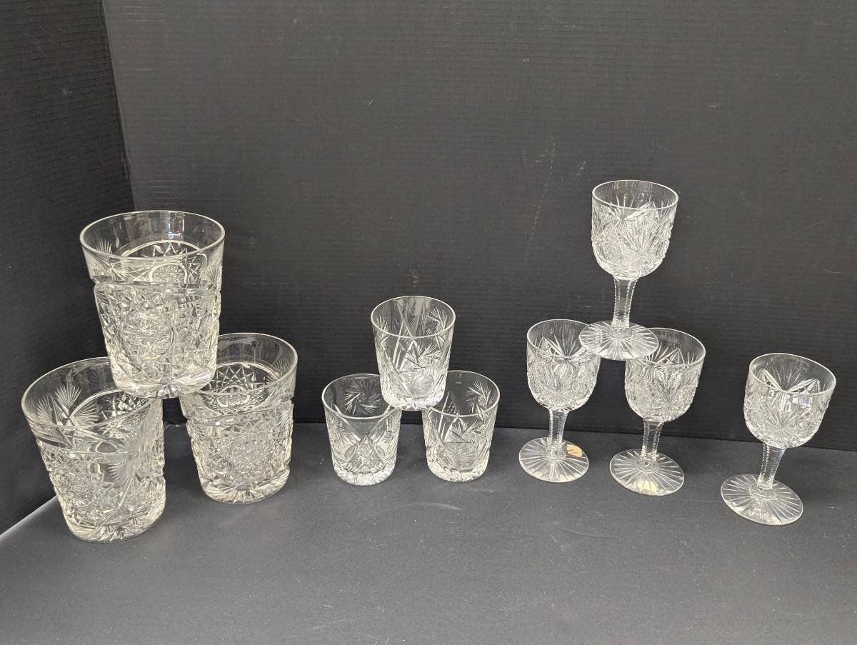 Collection of Vintage Etched Crystal Glasses