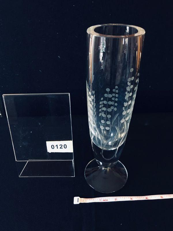 Vintage Etched Footed Crystal Vase. Nice and heavy