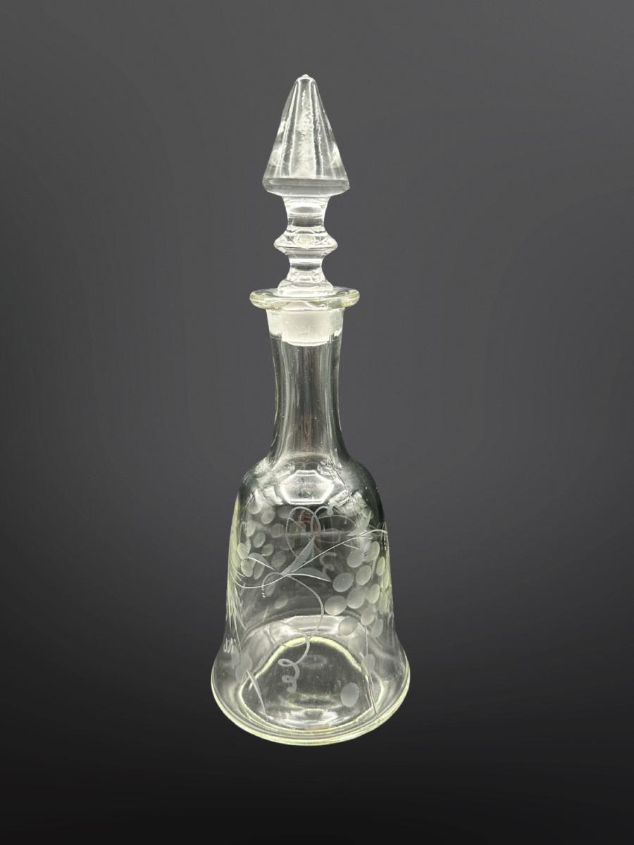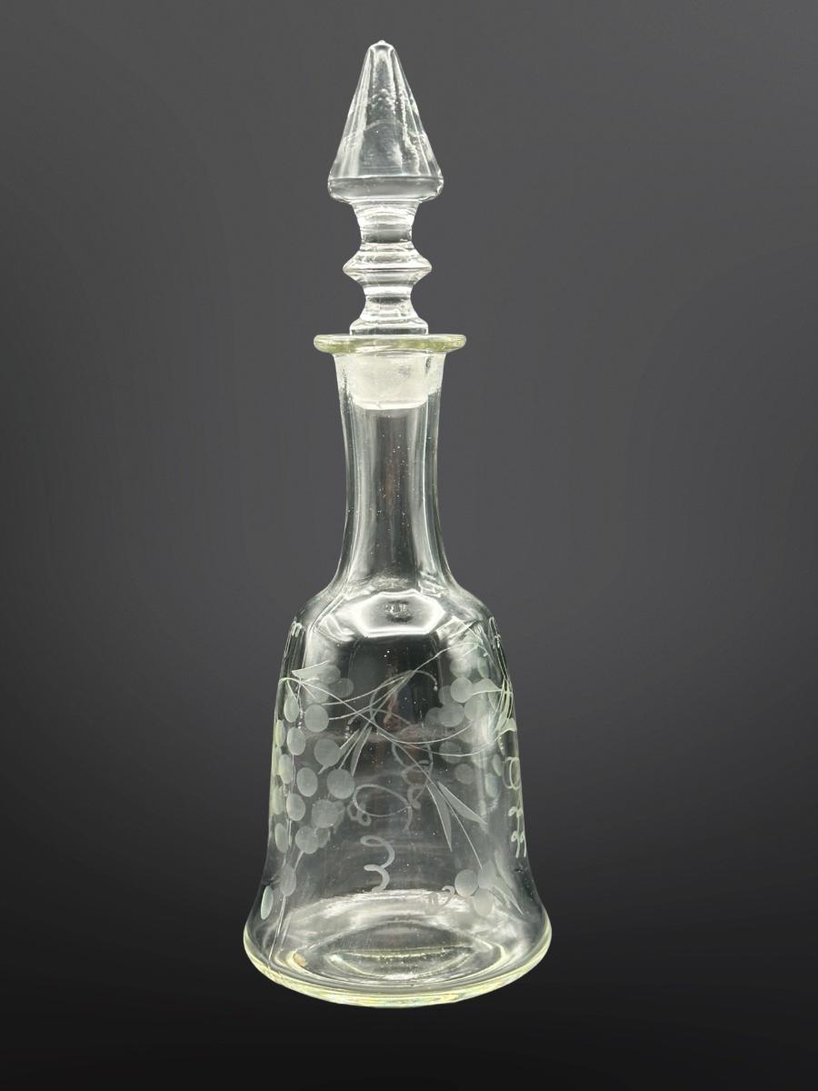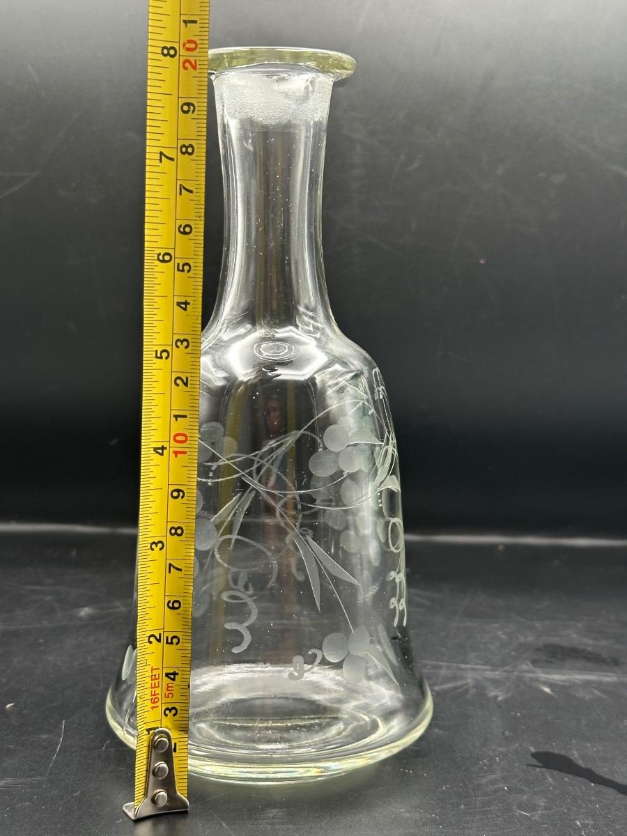 Vintage Etched Glass 8” Decanter with Stopper – Grape & Vine