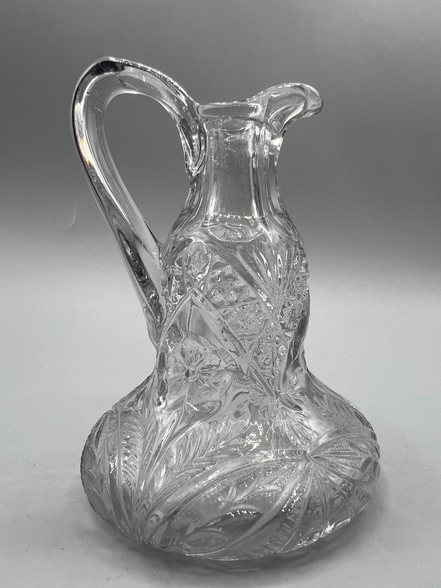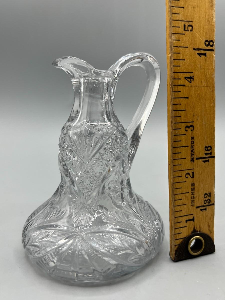 Vintage Etched Glass Early American Pressed Cruet Bottle