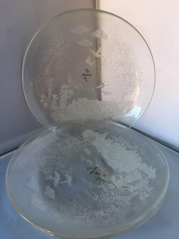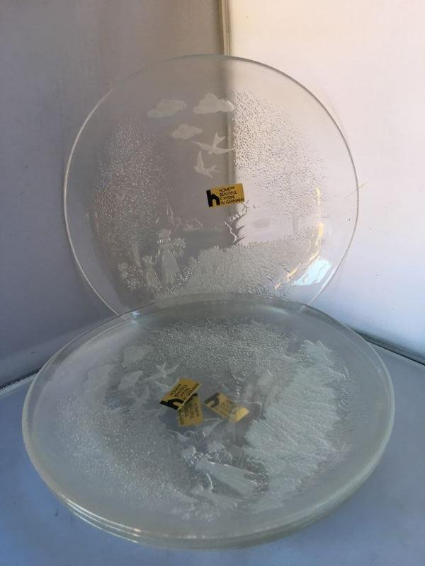 In VG conditions. $ are made in West Germany and 3 are made by Mikasa. They look so similar that they almost fooled us. Each plate measures 7.5" diameter. New, never used.